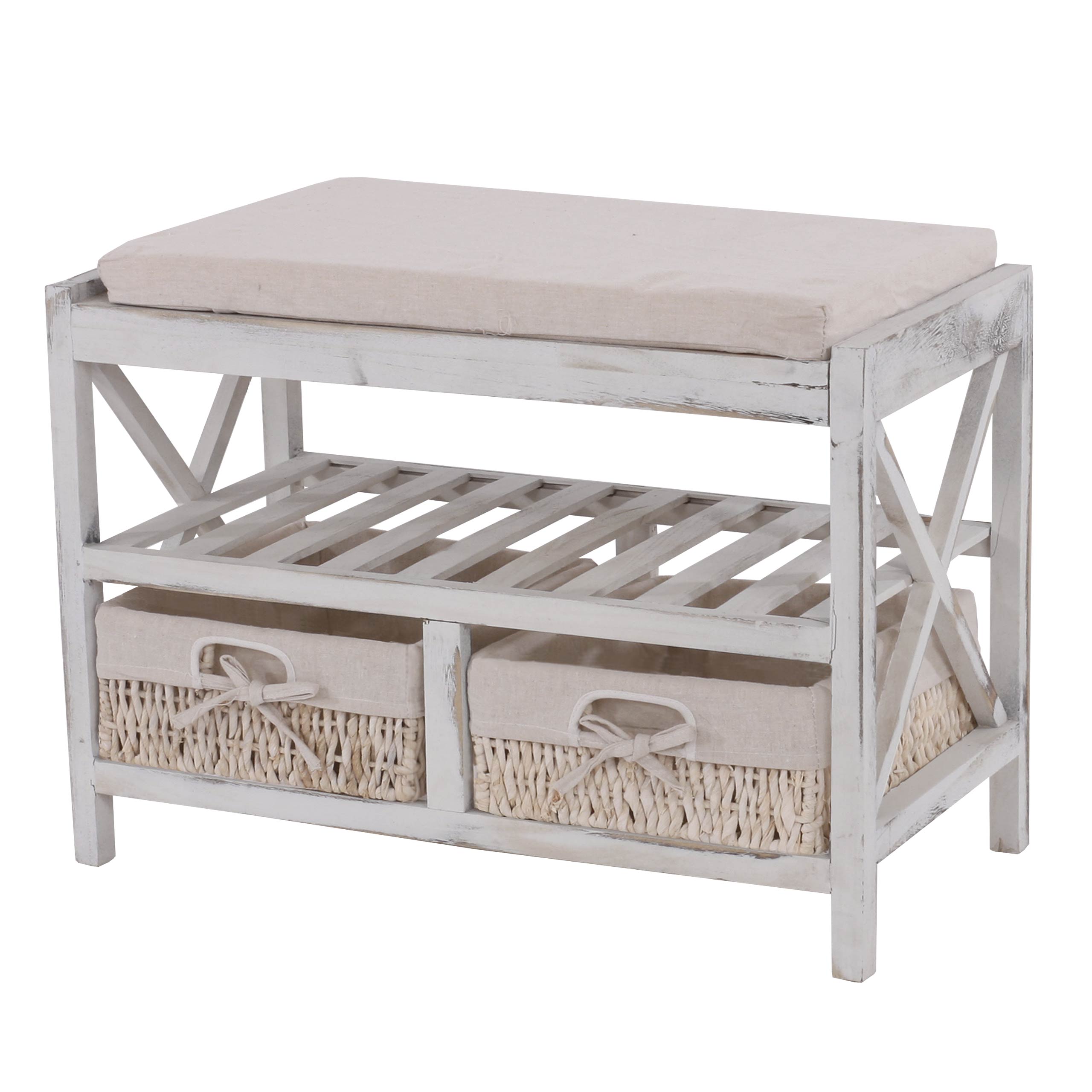 Schuhregal Kommode Sitzbank 45x65x34cm, Shabby-Look, Vintage ~ weiss