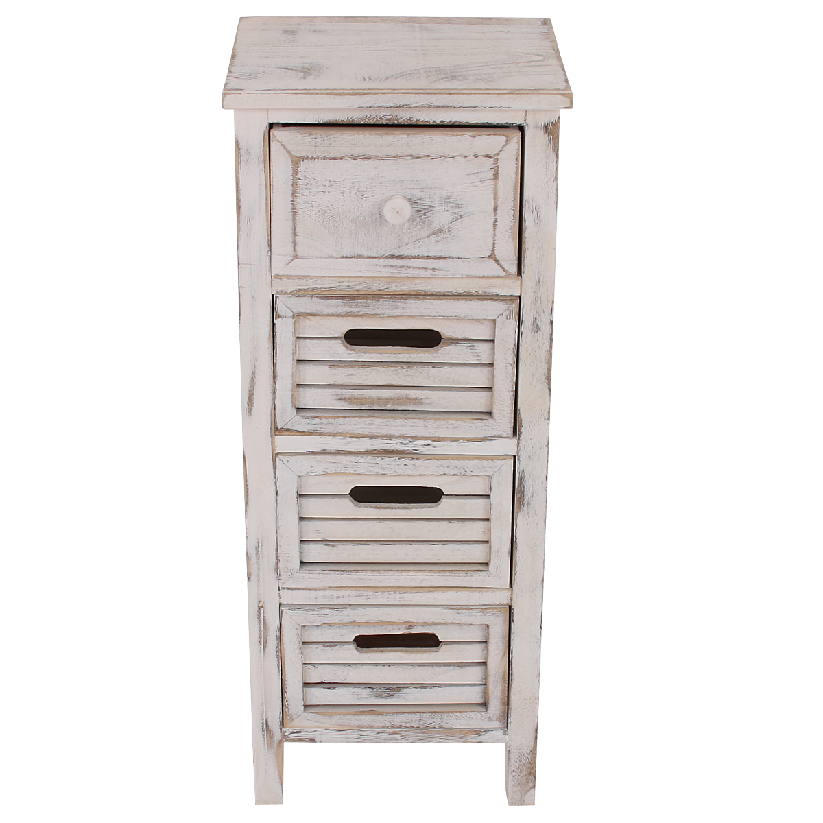 Diese elegante Holzkommode bringt schlichte Schönheit und Funktionalität in jeden Raum und bietet eine praktische Lösung zur Organisation Ihrer Habseligkeiten. Mit ihrem stilvollen Design fügt sie sich mühelos in diverse Wohnbereiche ein, sei es im Flur, Wohnzimmer oder Kinderzimmer. Die vier stabilen Schubladen sind mit griffbereiten Aussparungen ausgestattet, die genügend Platz für Ihre täglichen Gebrauchsgegenstände bieten und eine geordnete, optisch ansprechende Lagerung ermöglichen.