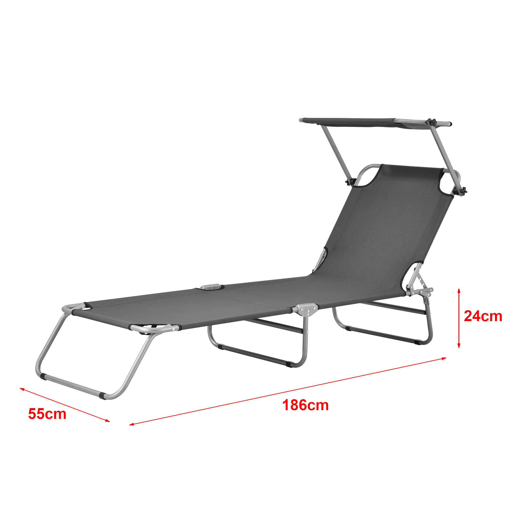 Die hochwertige Garten- und Strandliege mit Sonnendach, eignet sich perfekt für ein Sonnenbad. Genießen Sie das Wetter in vollen Zügen mit diesem fantastischen Freizeit- und Urlaubsbegleiter. Das stufenlos verstellbare Sonnendach spendet jederzeit Schatten, falls Sie mal geblendet werden. Egal ob bspw. im Garten, auf der Terrasse, auf dem Balkon, im Urlaub oder am Badesee, die Liege eignet sich ideal zum relaxen und entspannen. Sie ist, wegen der zwei Transportschlaufen, leicht zu transportieren und durch das zusammenklappbare Gestell sehr platzsparend.
