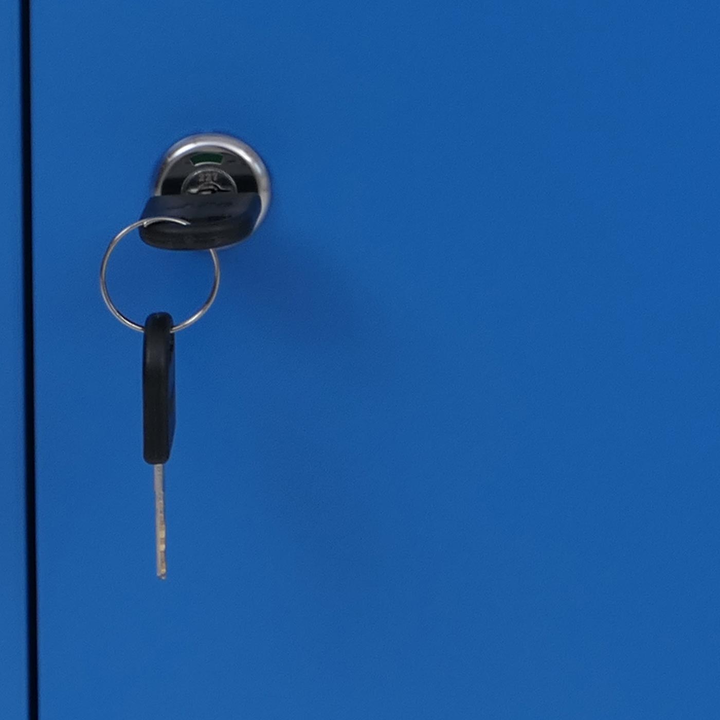 Schreiben Sie die erste Rezension für „Spind Schliessfach mit 3 Türen, blau, 90x38x45cm, Schliessfach“