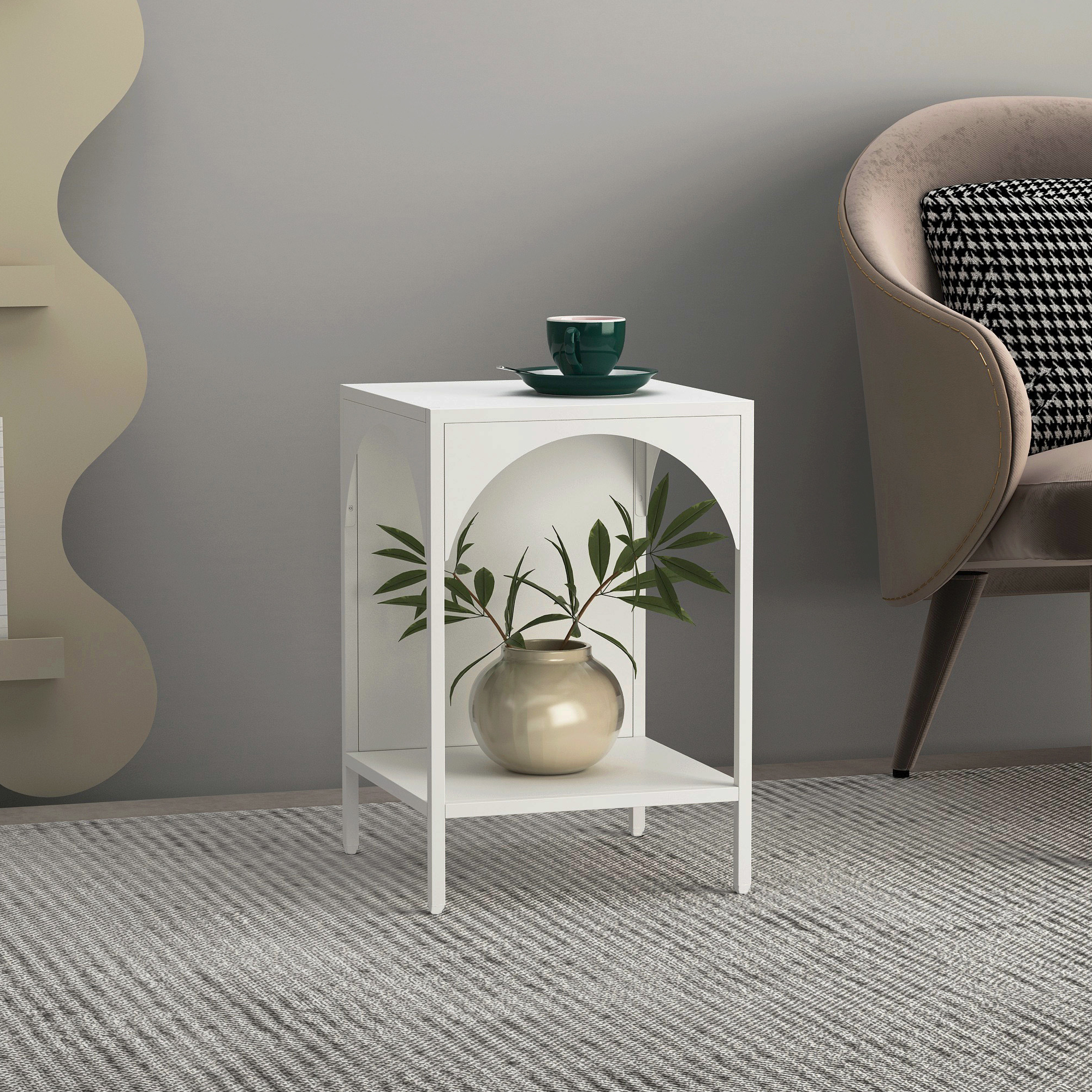 Es verfügt über zwei Ablageflächen. Diese bieten ausreichend Platz für Bücher, Dekorationsgegenstände, Pflanzen und mehr.