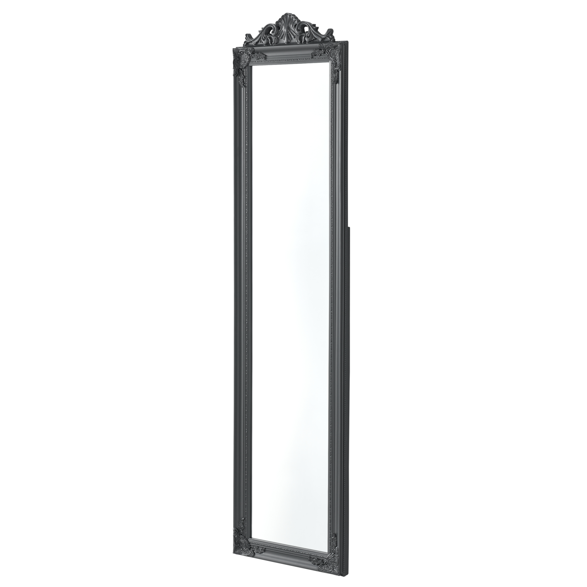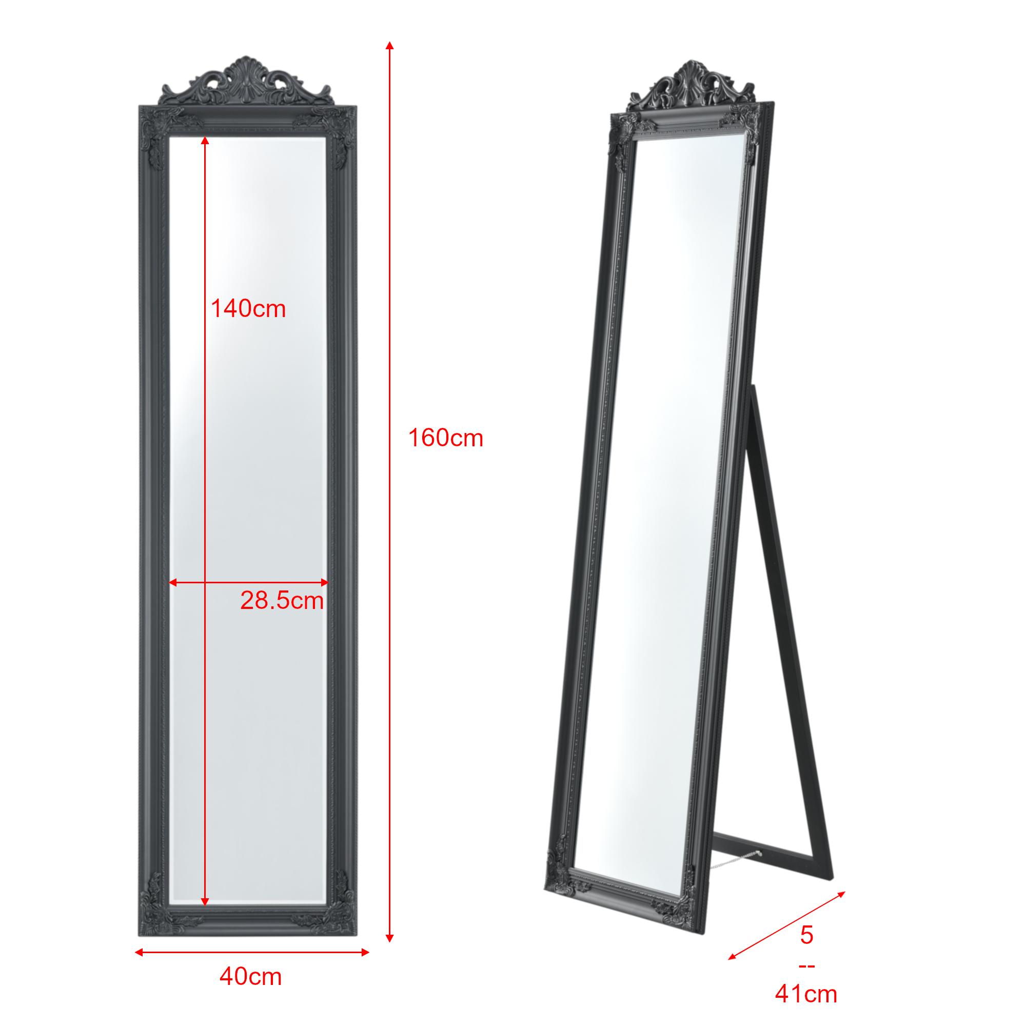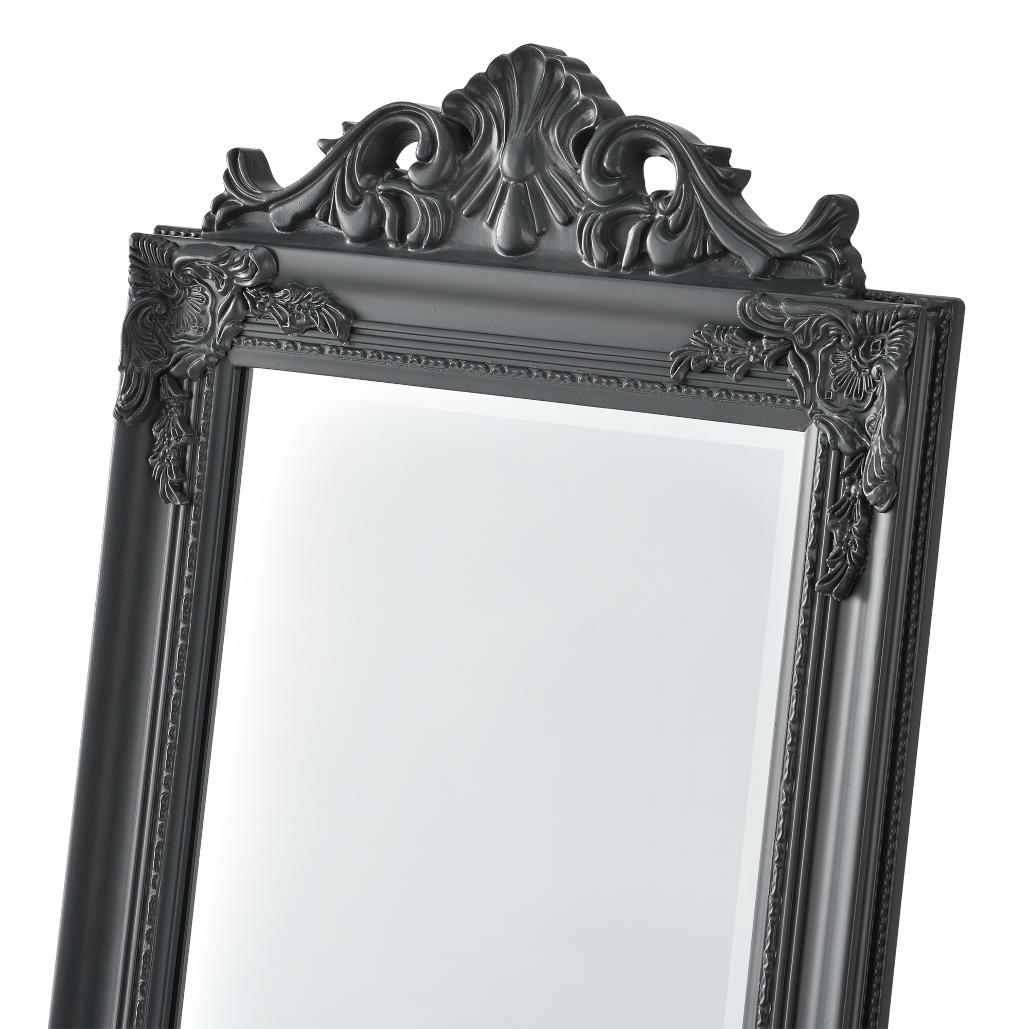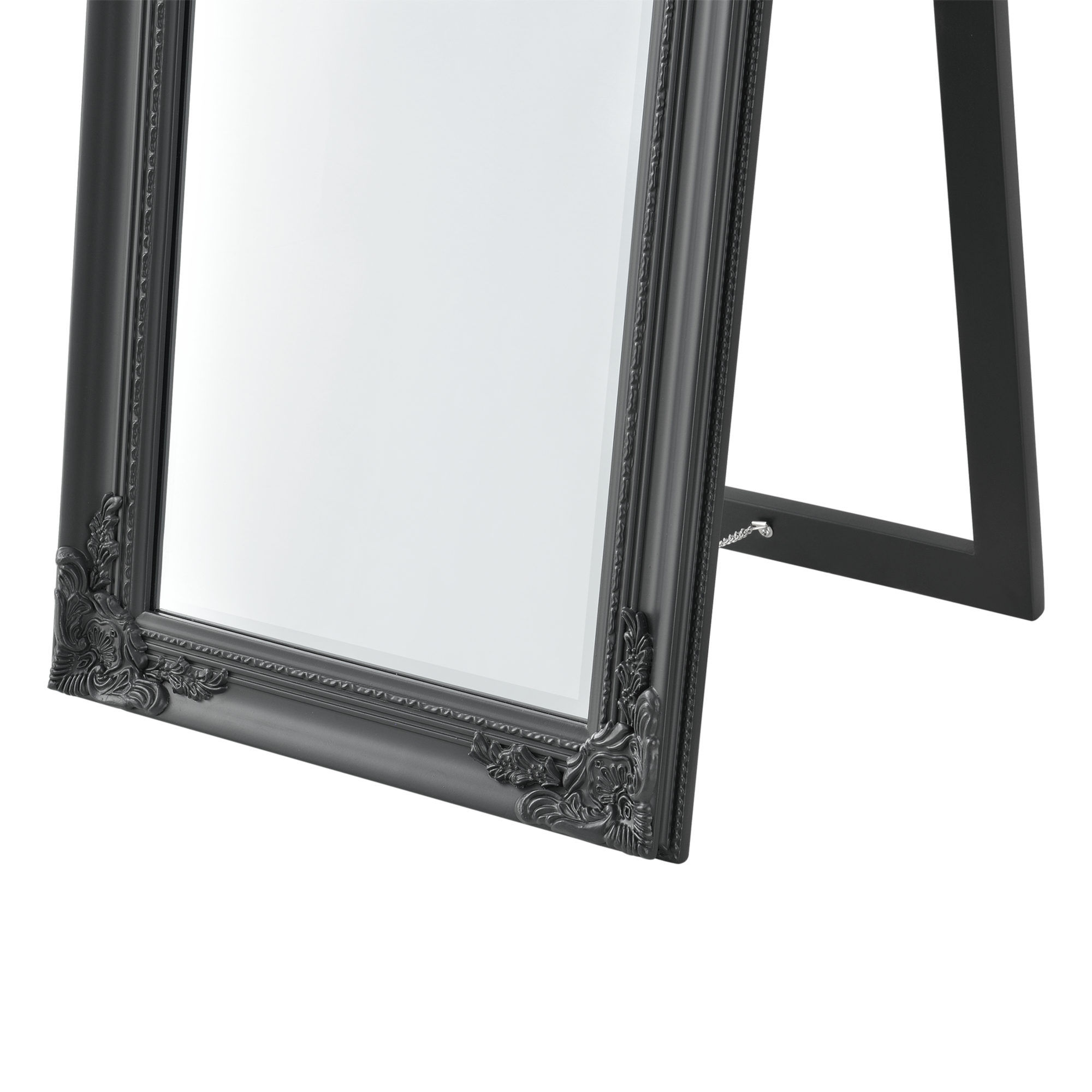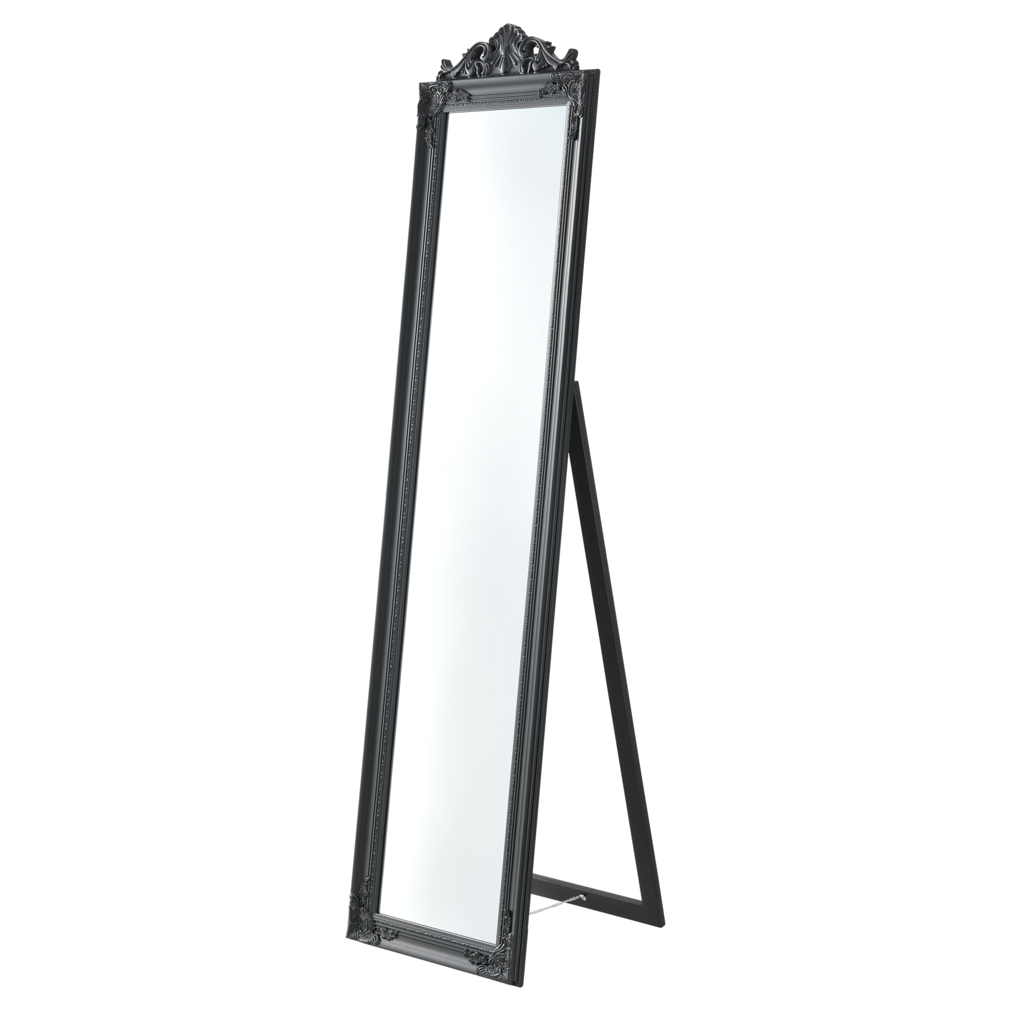 Der Ganzkörperspiegel eignet sich ideal für Ihren Flur, Ihr Schlafzimmer, Ihren Ankleideraum oder wo auch immer Sie einen Spiegel benötigen. Durch den verzierten Rahmen im dekorativen Barock-Stil sorgt er stets für eine klassische und elegante Atmosphäre. Der neigbare Aufsteller sorgt für einen stabilen Stand.