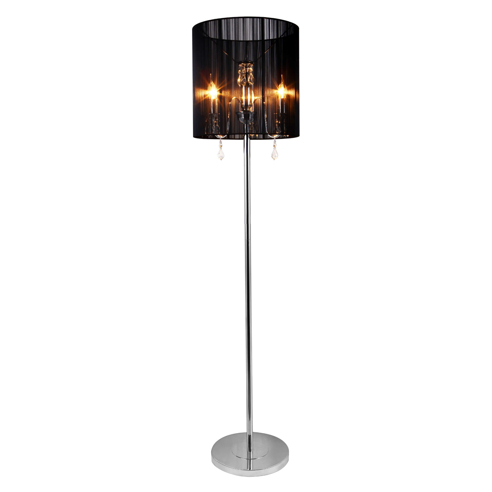 – Moderne Stehleuchte mit schwarzem Schirm, Kunstkristallen und Fußschalter