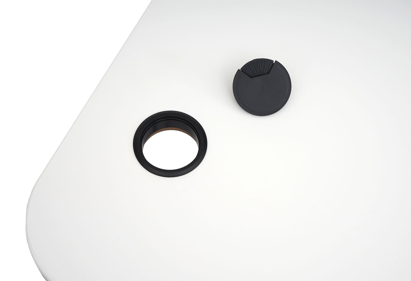 – Zwei Aussparungen für Kabel in der Tischplatte