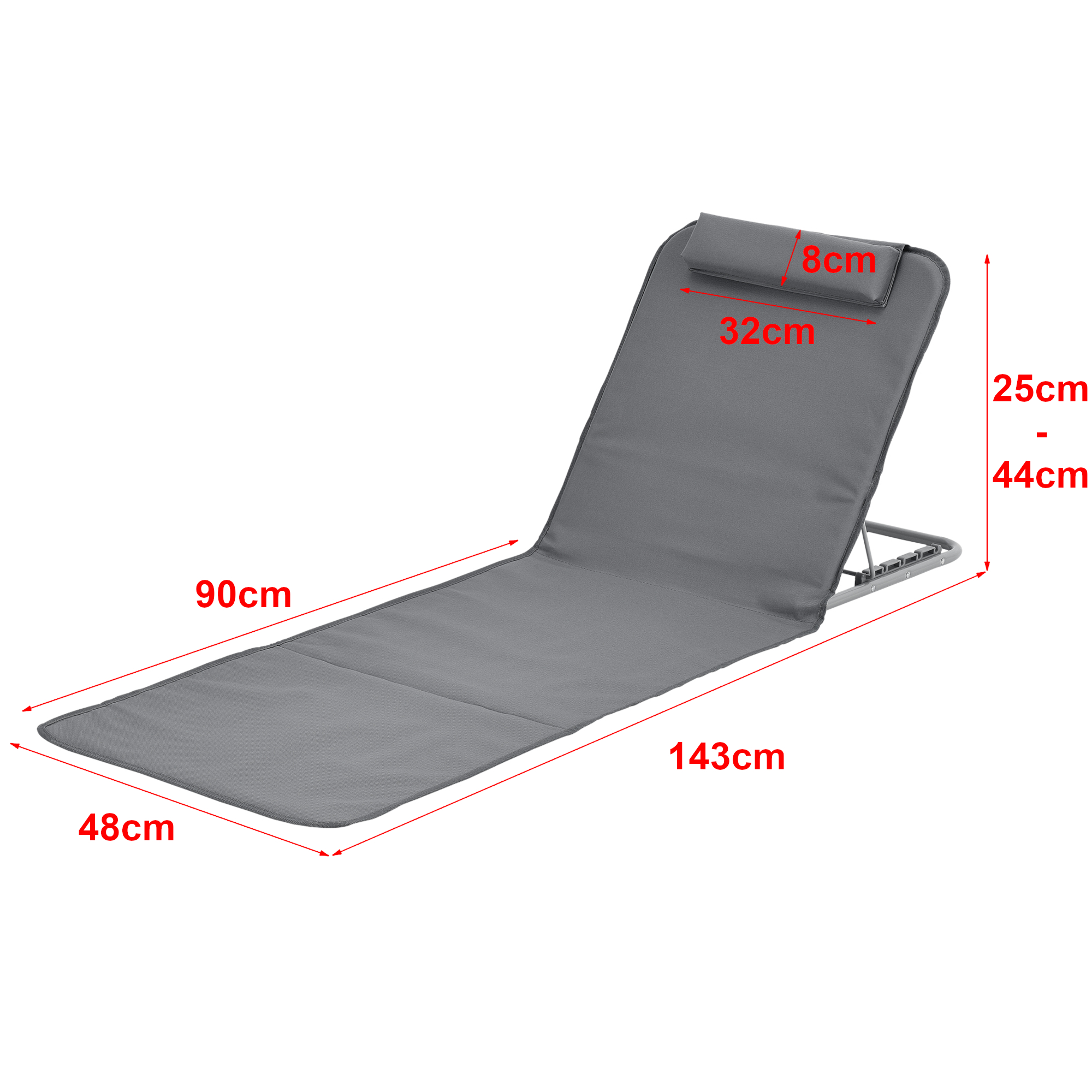 – Höhe (je nach Position der verstellbaren Rückenlehne): 25 – 44 cm