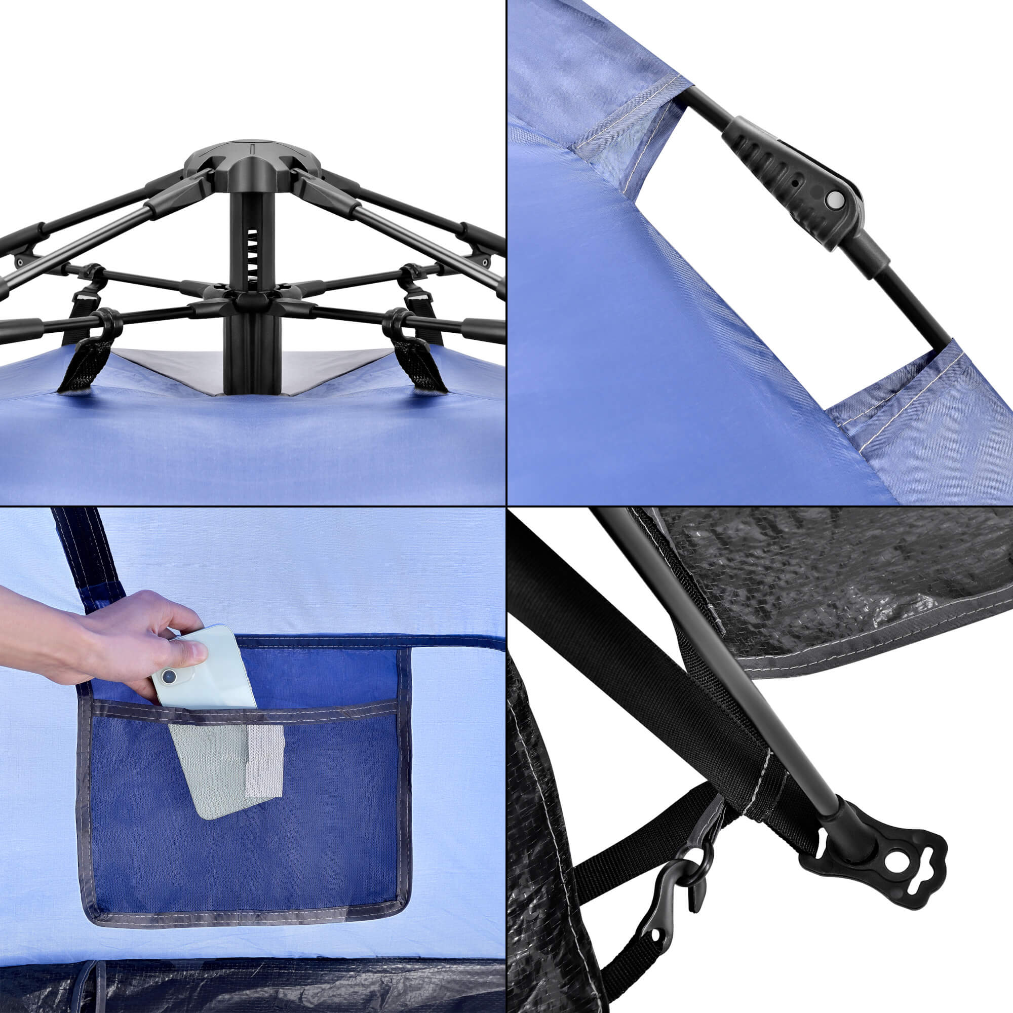 – Zeltbespannung: 100% Polyester 190T, PU-beschichtet