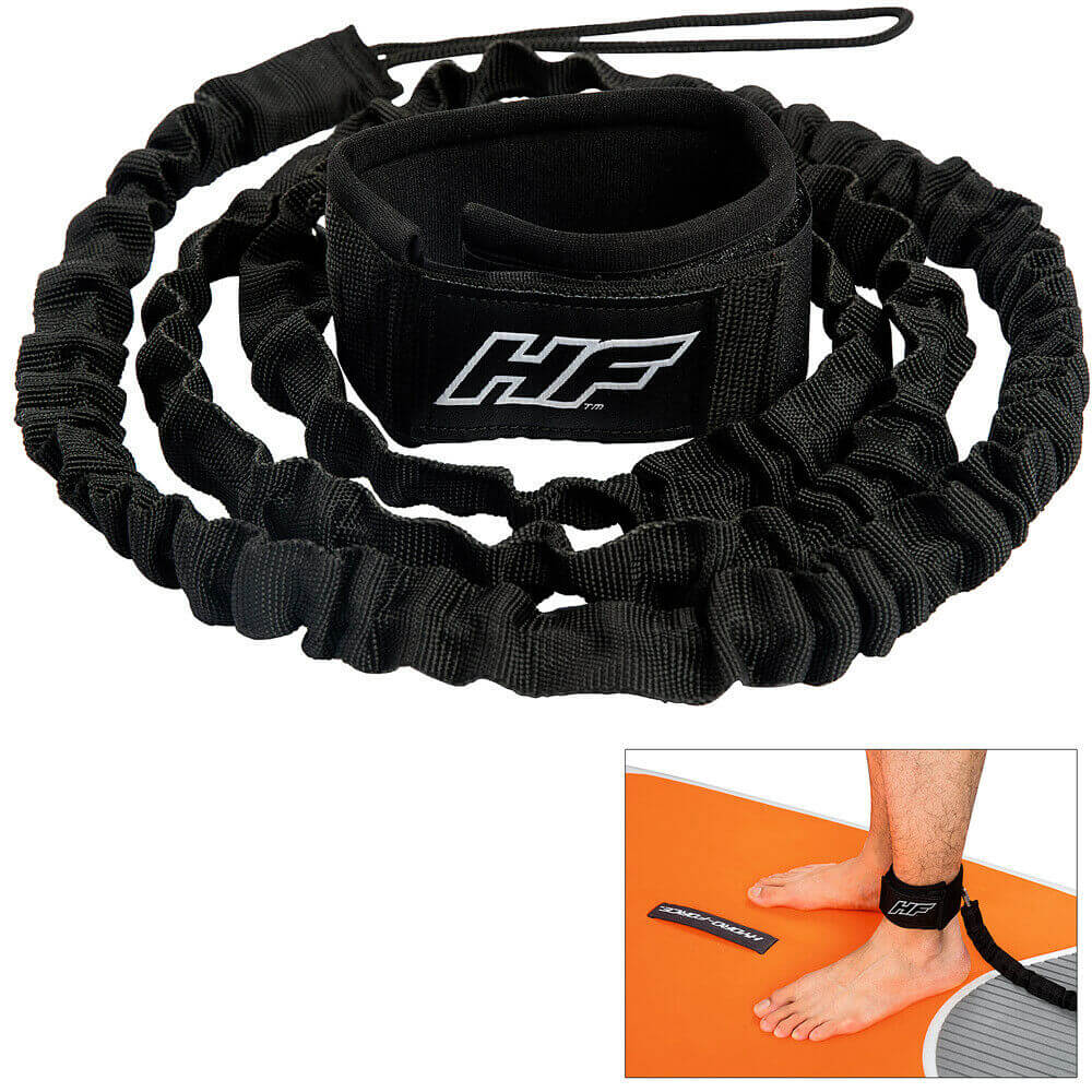 Ein praktischer Rucksack, ein Reparatur-Set, eine praktische Surfleine zum befestigen an den Fuß und ein Multifunktionspaddel zum stehenden Rudern sind ebenfalls enthalten.
