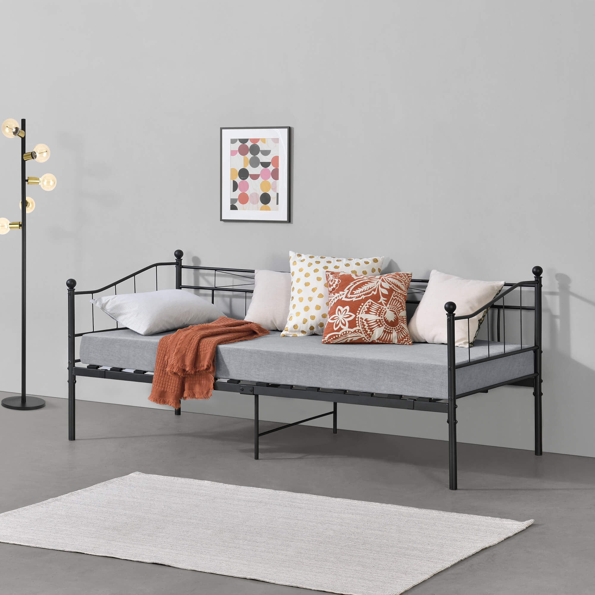 Das praktische und stabile Tagesbett hat eine solide Konstruktion aus Metall. Die starken Latten bieten die nötige Unterstützung und sind sehr komfortabel.