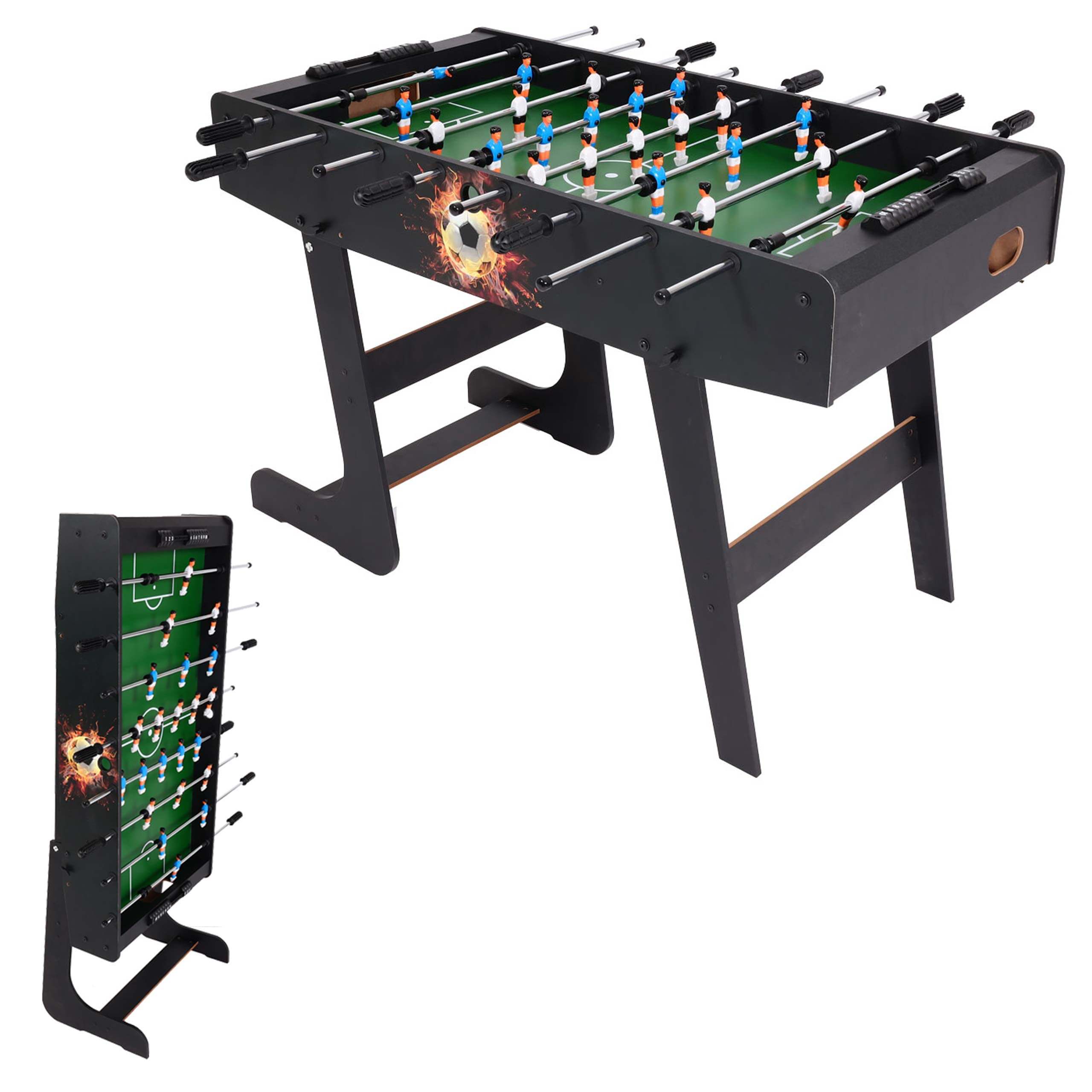 – Sie wünschen sich schon lange einen Tischkicker, haben aber einfach nicht den Platz dafür? Während des Spiels ist es ein voll funktionsfähiger Tischkicker, nach dem Spiel einfach zusammenklappen und platzsparend verstauen.