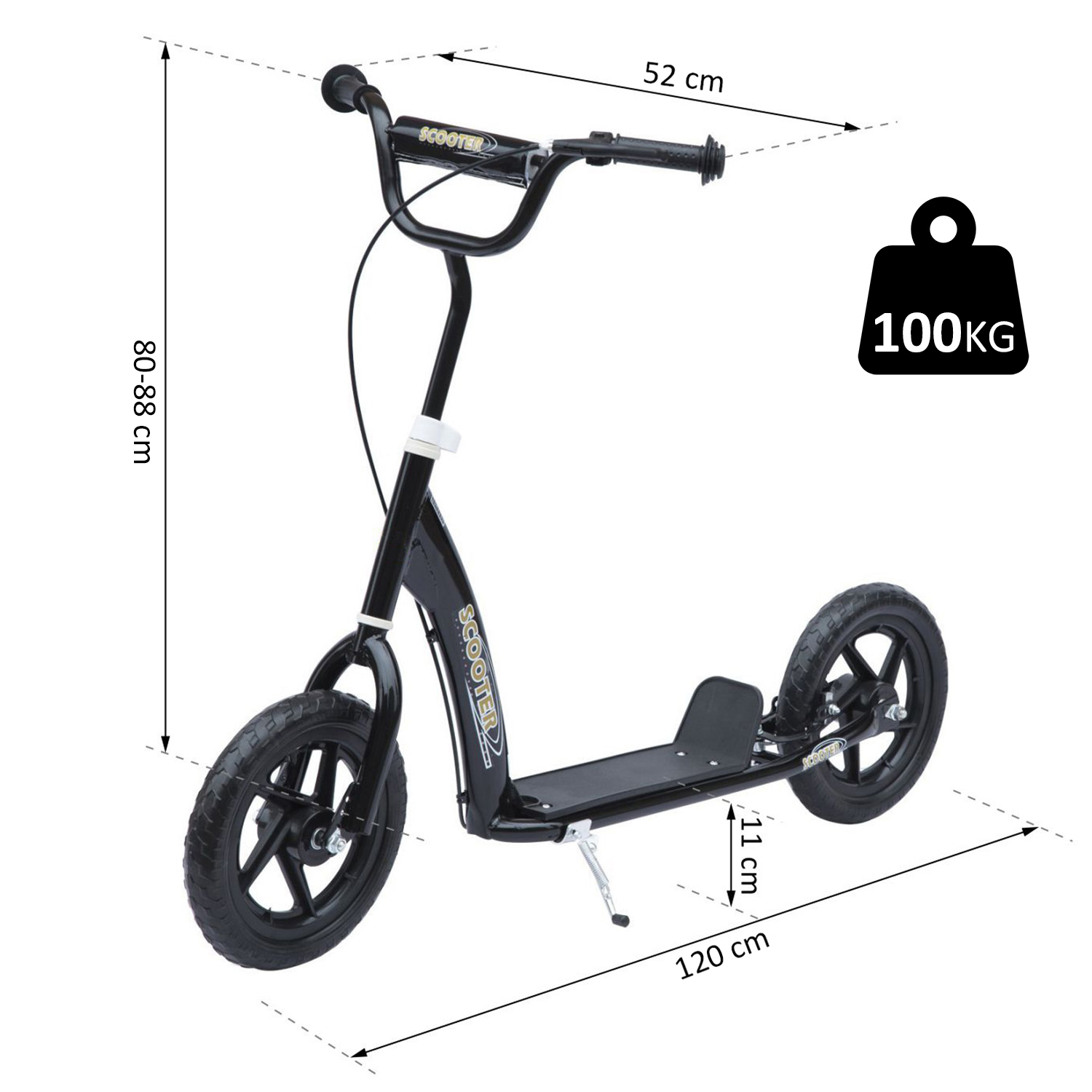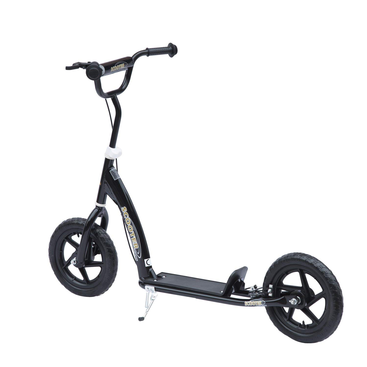Ein Tretroller für die ganze Familie. Nicht nur für Kinder, sondern auch Geschwister, Eltern und Freunde. Denn für’s schnellere Vorankommen zum Bäcker oder zur Arbeit eignet sich der Roller ebenfalls hervorragend. Dank 12“ Felgen und Gummibereifung gleiten Sie flott voran. Die Bremse und wird einfach über den Lenker betätigt und bringt Sie sicher zum Stehen. Und dank des Ständers können Sie den Roller ganz bequem abstellen, ohne Ihn hinlegen zu müssen. Machen Sie Ihren Kindern eine Freude oder entdecken Sie städtische Mobilität neu! Mit dem Tretroller von HOMCOM.