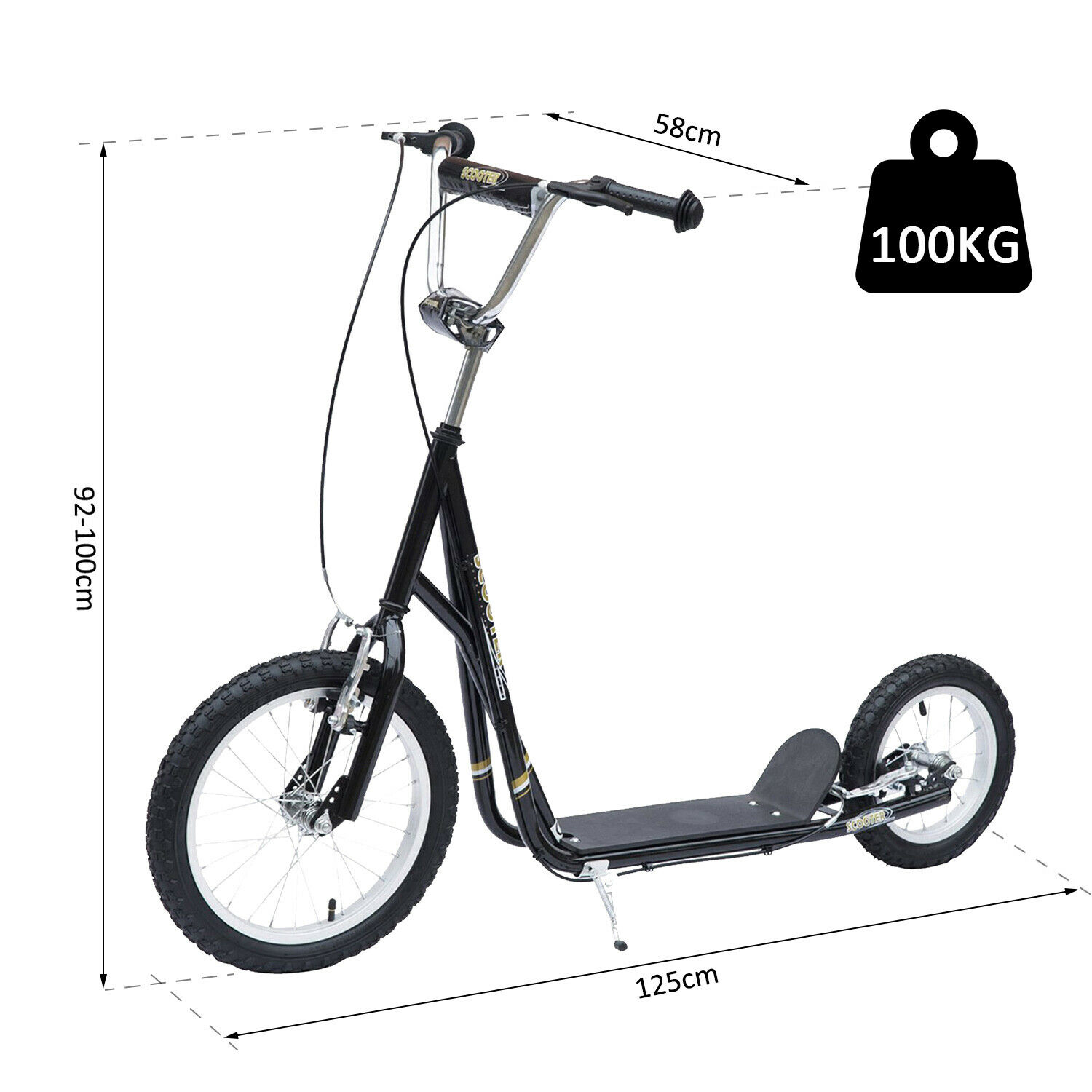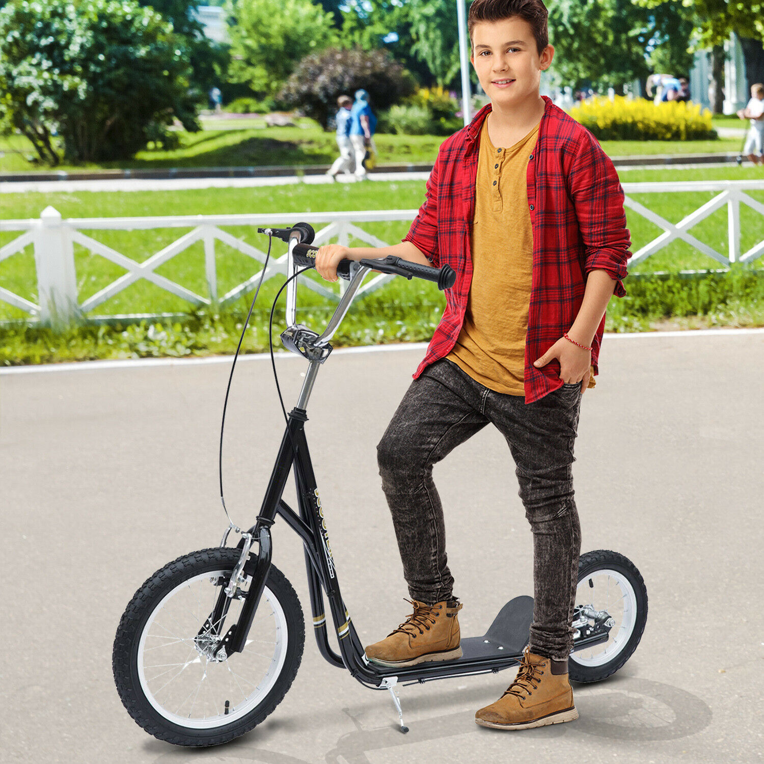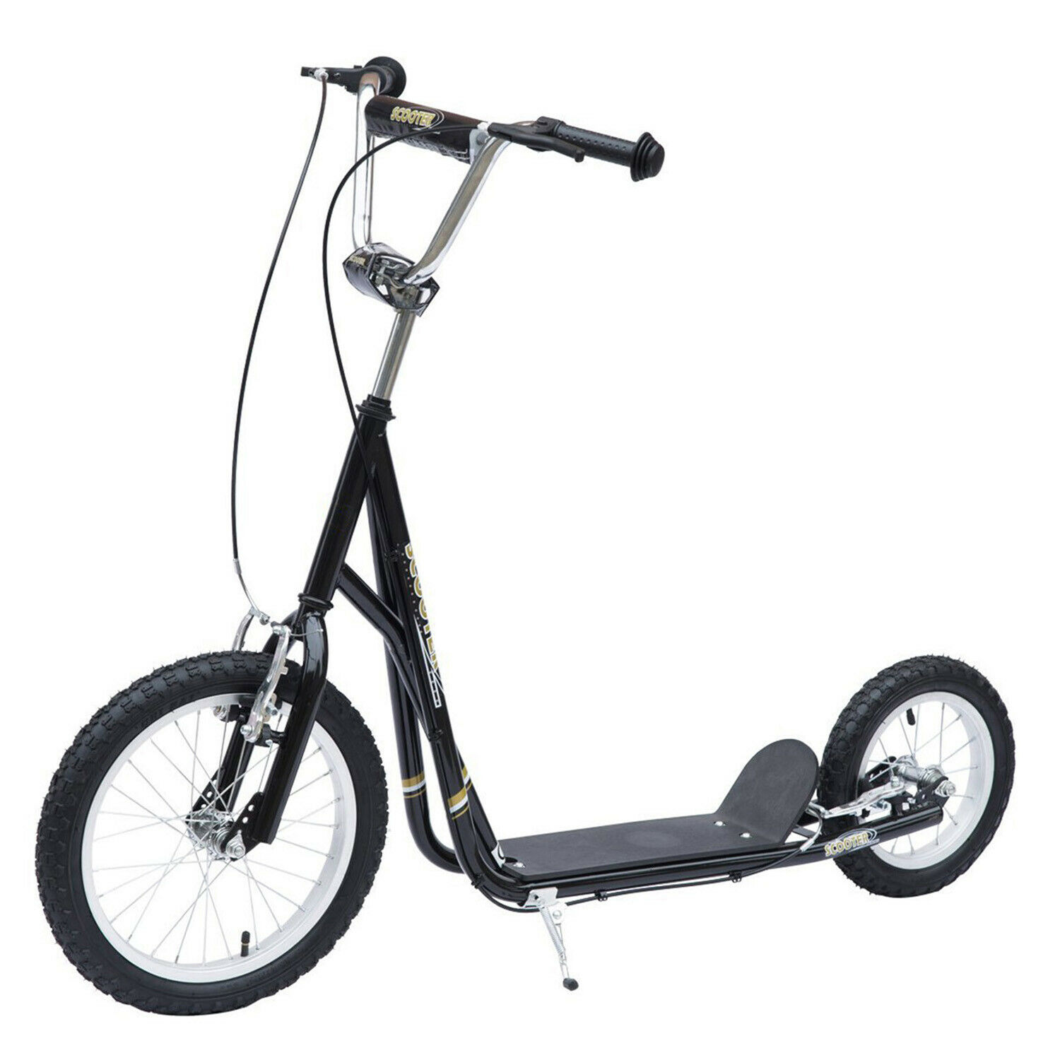 Ein Tretroller für die ganze Familie. Nicht nur für Kinder, sondern auch Geschwister, Eltern und Freunde. Denn für’s schnellere Vorankommen zum Bäcker oder zur Arbeit eignet sich der Roller ebenfalls hervorragend. Dank 16″ und 12″ Felgen und Luftbereifung gleiten Sie flott voran. Die V-Bremsen werden über den Lenker betätigt und bringen Sie sicher zum Stehen. Und dank des Ständers können Sie den Roller ganz bequem abstellen, ohne Ihn hinlegen zu müssen. Machen Sie Ihren Kindern eine Freude oder entdecken Sie städtische Mobilität neu! Mit dem Tretroller von HOMCOM.