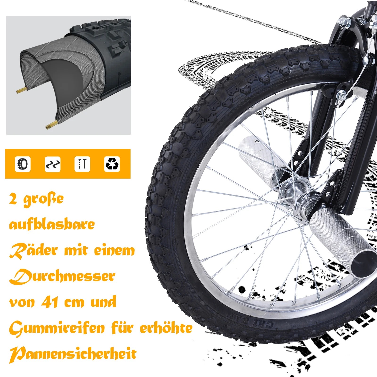 - Extra dicke Luftbereifung mit bestem Federungskomfort (16 Zoll)