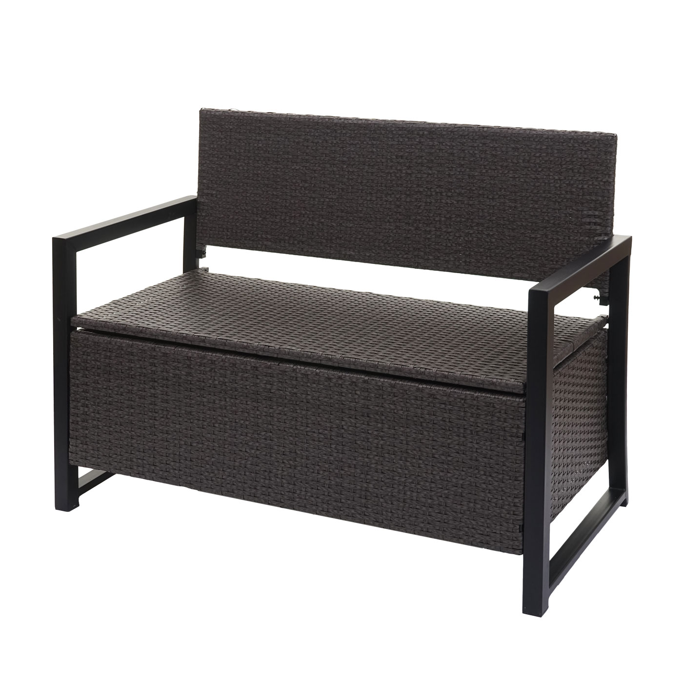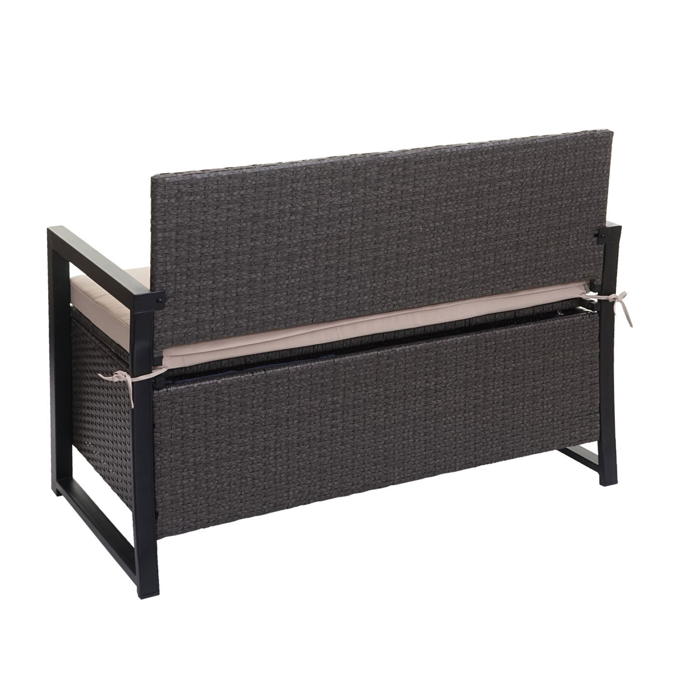 Truhenbank Rattan JAM-F39 2-Sitzer – Grau mit beigen Kissen