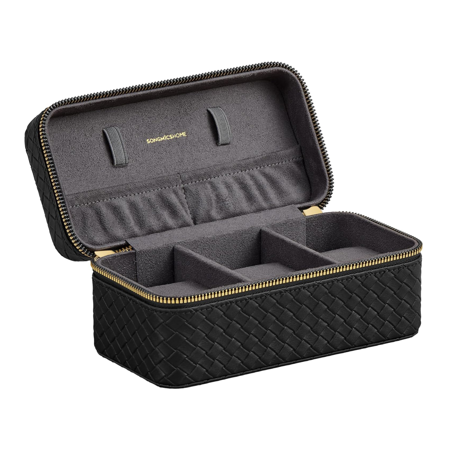Dieses luxuriöse Uhrenetui schützt Ihre wertvollen Uhren unterwegs. Kompakt, leicht und mit edlem Wildleder-Innenfutter.
