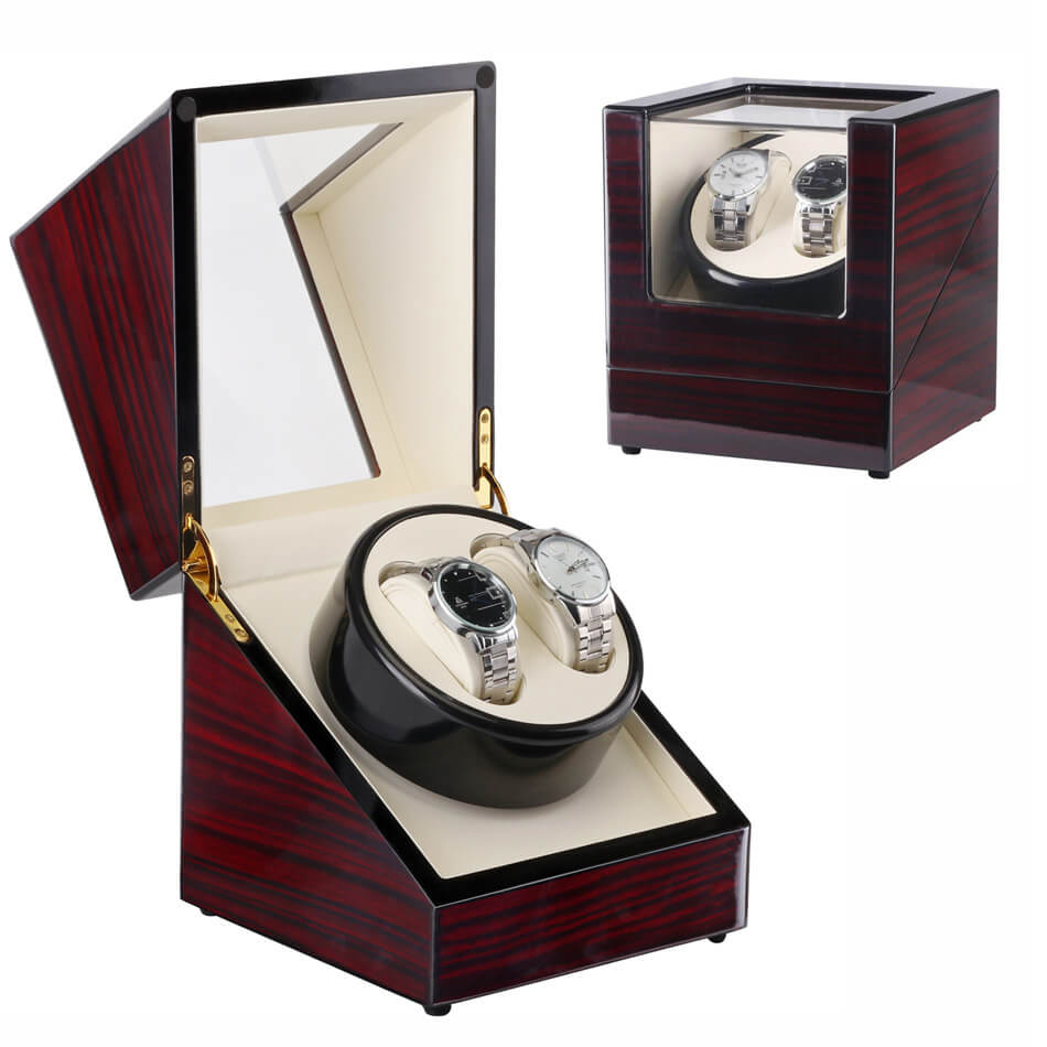 Uhrenbeweger für 2 Uhren Holz weinrot