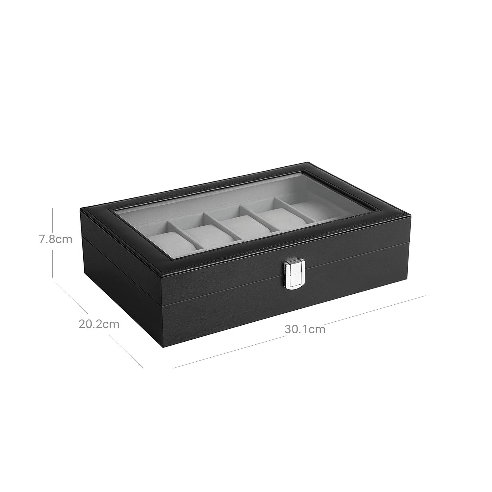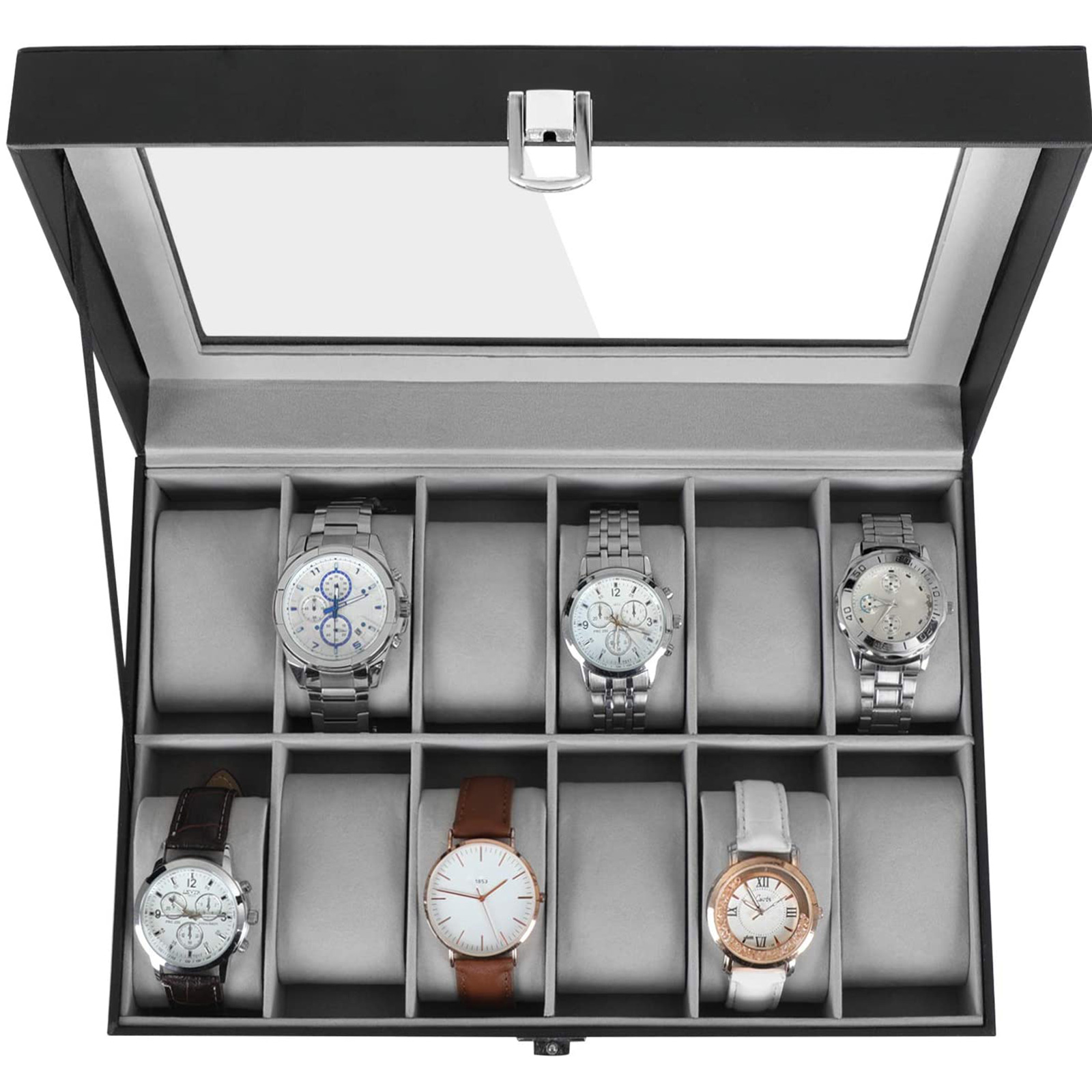 Uhrenbox Schmuckbox mit 12 Fächern Schwarz