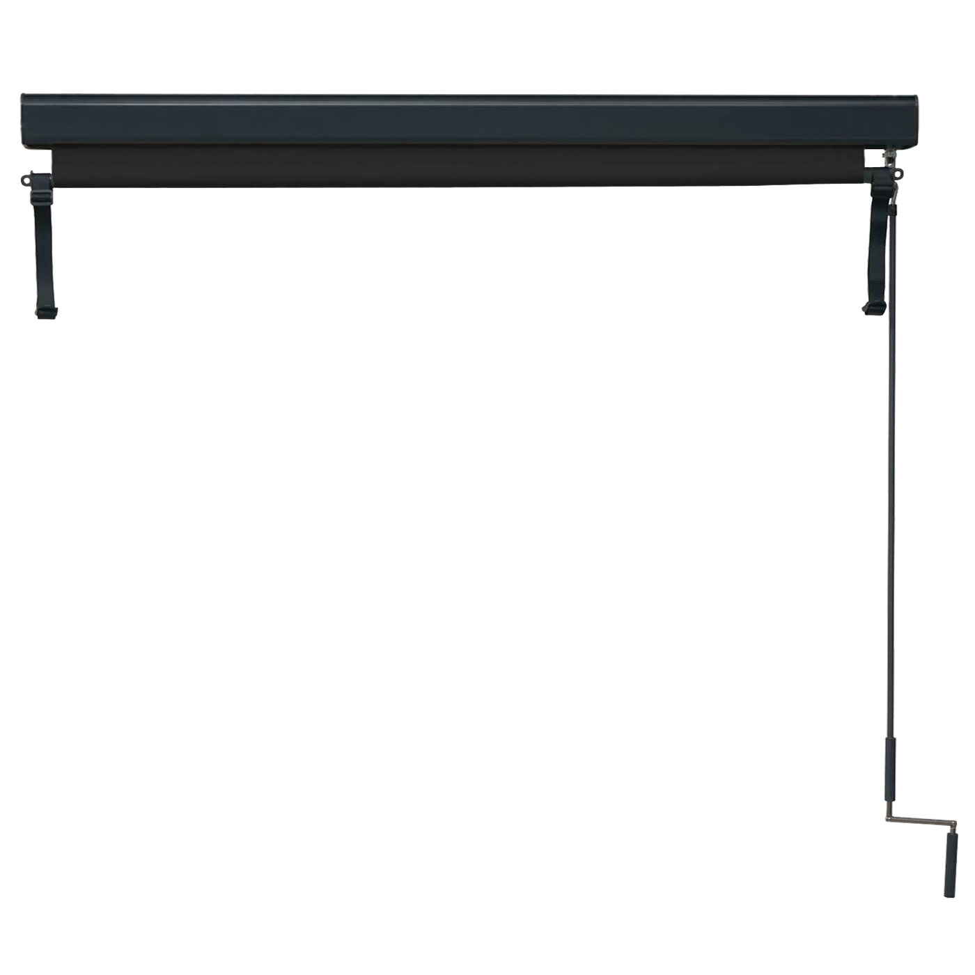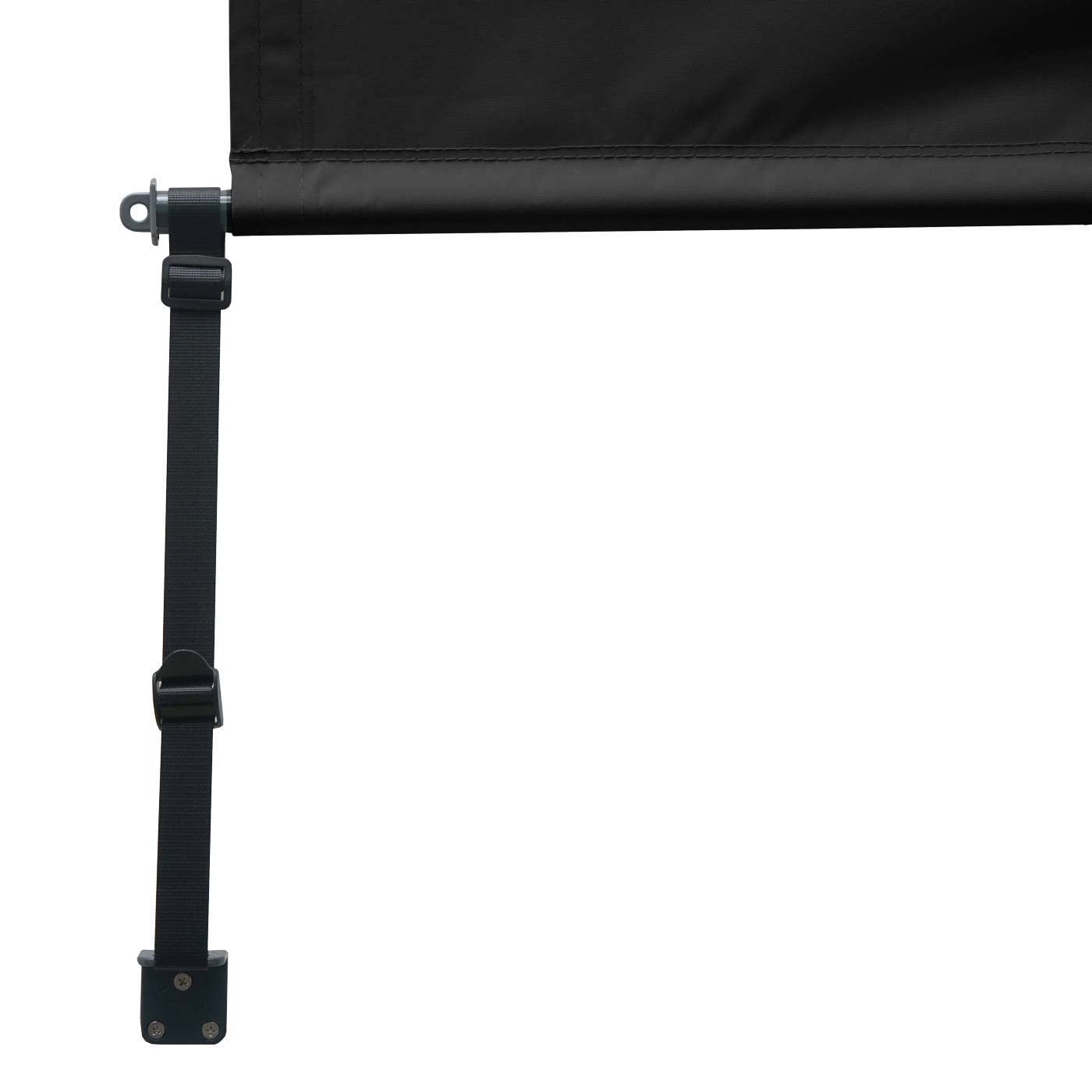 Die Montage erfolgt mühelos an Wand oder Decke. Nach Anbringen der Halterungen wird die Markise befestigt und kann mit der Handkurbel stufenlos auf die gewünschte Länge ausgefahren werden. Die Wandfixierungen unten lassen sich flexibel positionieren. sodass Sie die Markise optimal stabilisieren können – wahlweise auch an einem Balkongeländer.