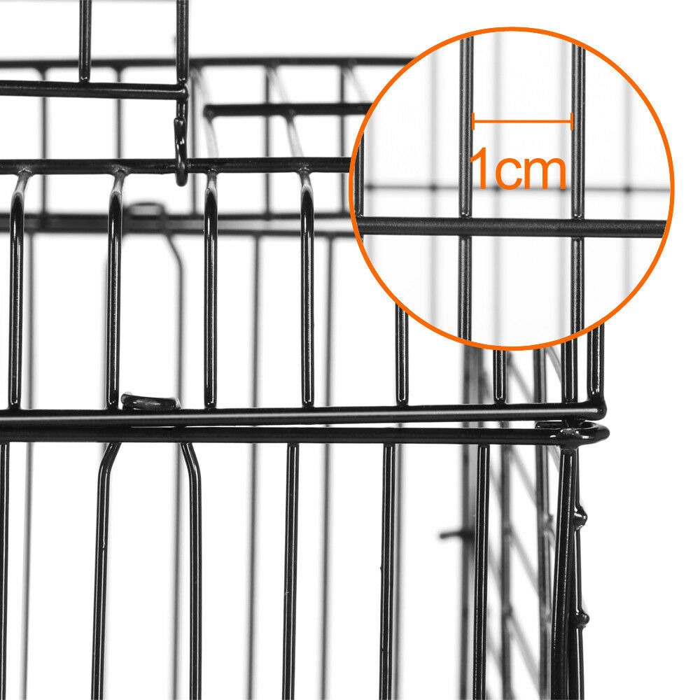 1 große Türen mit kleine Türen, 2 Seitentüren mit weißen Plastikfutternäpfen zum Wechseln von Essen und Wasser. Einfache Reinigung zur Herausnehmbar Bodenschale und und abnehmbare Bodengitter.