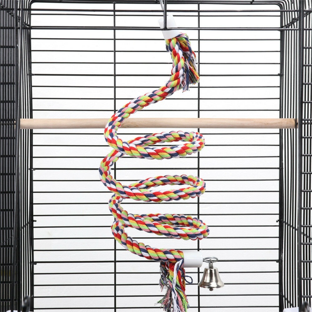 -Die Vogelkletterseil ist weich und bunt umwickelt, flexibel aber stabil und verbiegbar. Eine kleine Glocke wird am Ende der Zeichenkette installiert, genug zu wecken die Neugier Ihrer Vögel