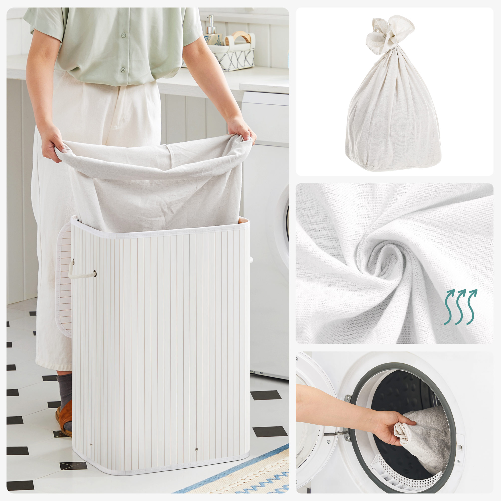 Mit einem Fassungsvermögen von 72 l bietet dieser Bambus-Wäschekorb viel Platz.