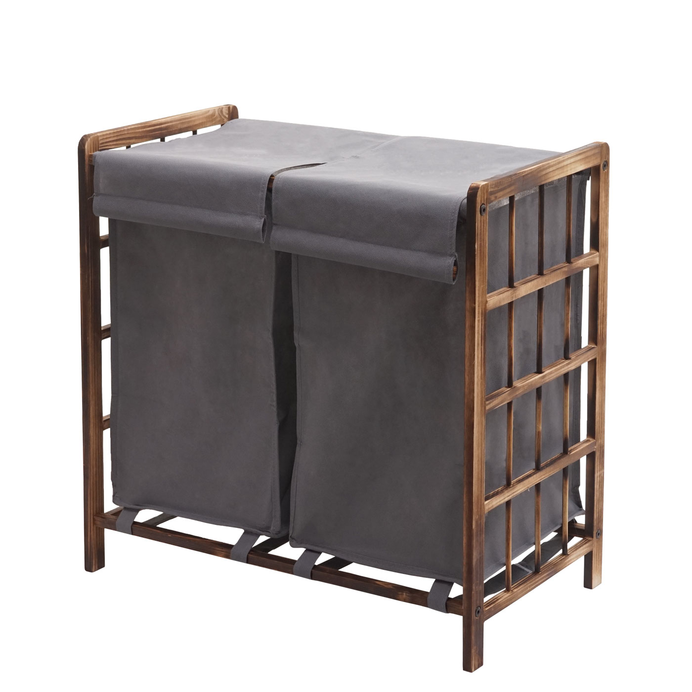 Wäschekorb Massiv-Holz 2 Fächer 60x60x33cm 68l
