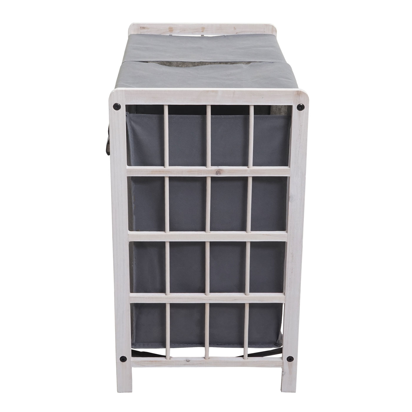Wäschekorb Massiv-Holz 2 Fächer 60x60x33cm 68l