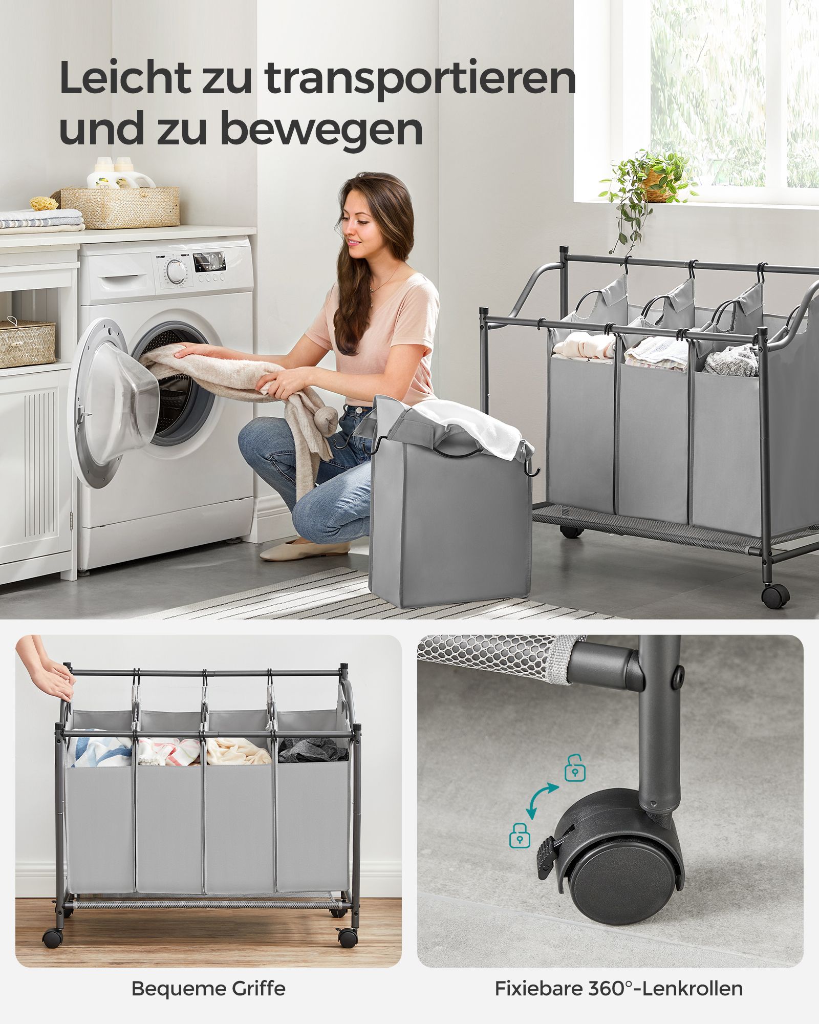 Dieser geräumige Wäschekorb mit 140 l Fassungsvermögen hilft Ihnen, Ihre Wäsche effizient zu sortieren.