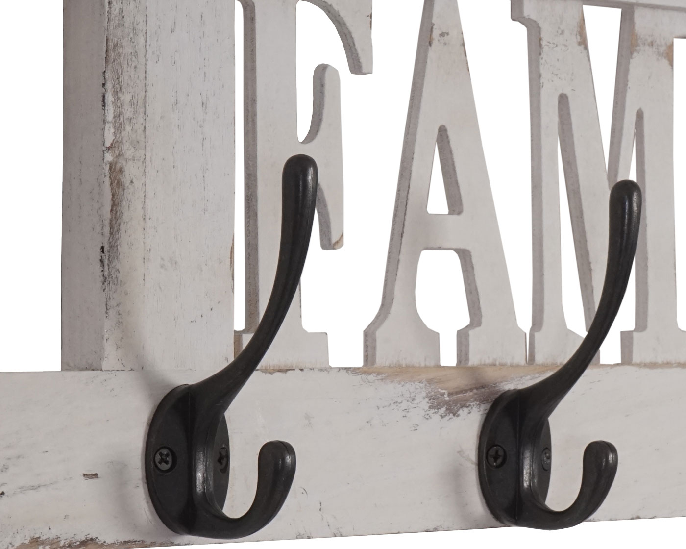 Diese charmante Wandgarderobe wertet jeden Raum, sei es Ihr Flur oder Schlafzimmer, nicht nur praktisch, sondern auch dekorativ auf. Der Shabby-Look bringt eine einladende Atmosphäre und macht Kleidung durch die vier gut platzierten Haken schnell und übersichtlich zugänglich.