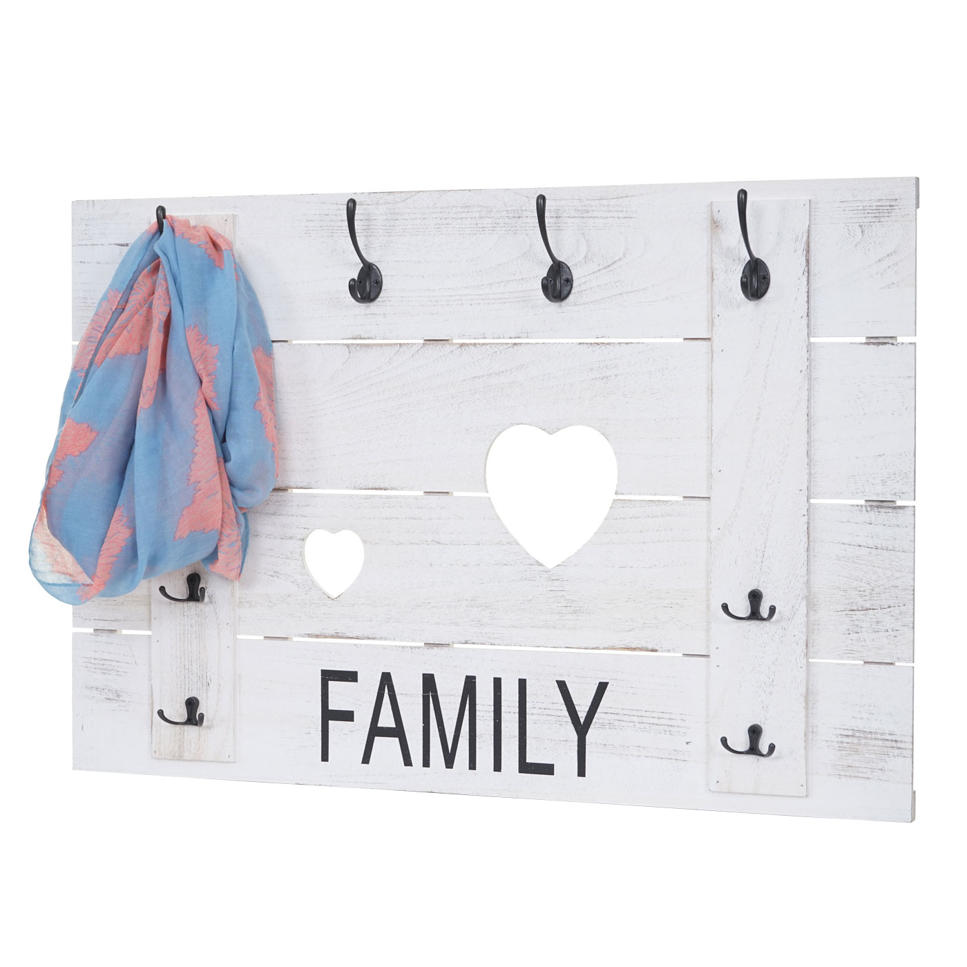 Wandgarderobe Family, Garderobenpaneel, Shabby-Look Vintage, 8 Haken 60x90cm