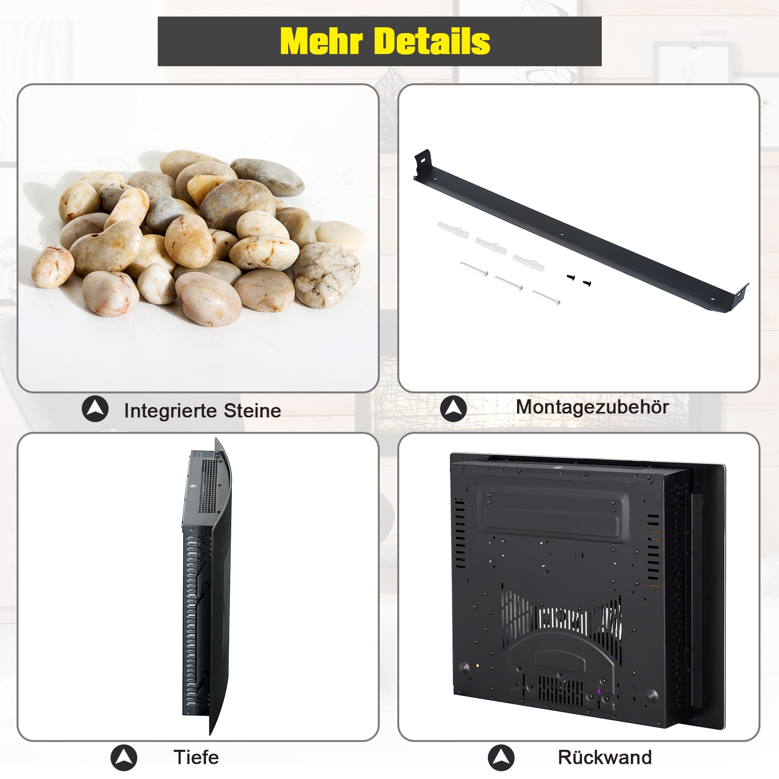 Mit zwei Heizstufen (900W / 1800W) sorgt der Kamin für eine angenehme Wärme, die sich an Ihre Bedürfnisse anpasst. Über die mitgelieferte Fernbedienung lassen sich Flammenfarbe, Temperatur und Einstellungen bequem steuern – für höchsten Komfort mit nur einem Knopfdruck.