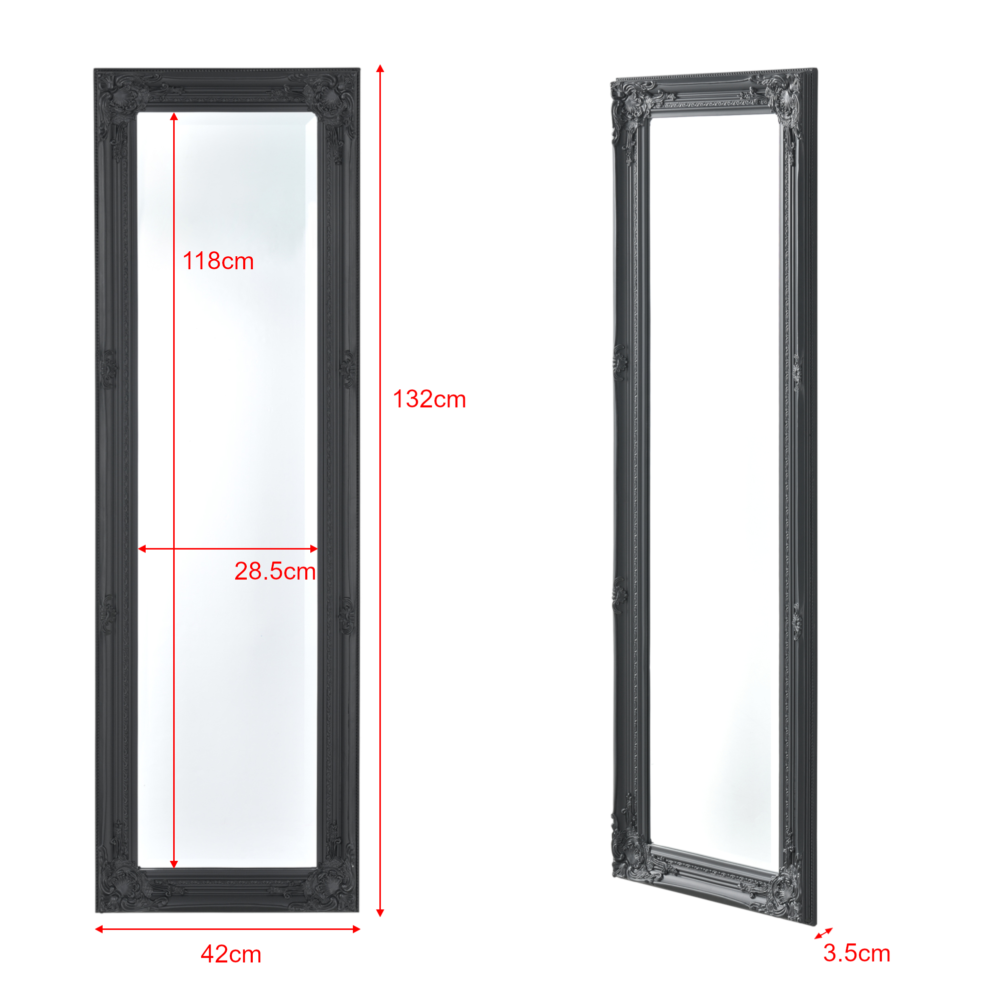 Der Ganzkörperspiegel eignet sich ideal für Ihren Flur, Ihr Schlafzimmer, Ihren Ankleideraum oder wo auch immer Sie einen Spiegel benötigen. Durch den verzierten Rahmen im dekorativen Barock-Stil sorgt er stets für eine klassische und elegante Atmosphäre. Der Spiegel lässt sich sowohl senkrecht als auch waagerecht an der Wand montieren.