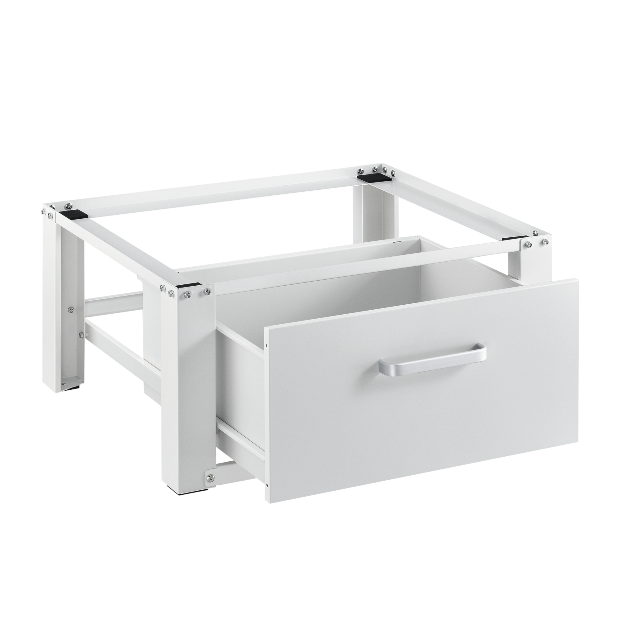 Das stabile und robuste Untergestell sorgt für eine Erhöhung der Position, bei allen gängigen Waschmaschinen und Trocknern. Dadurch wird das Beladen und Entnehmen der Wäsche komfortabler. Durch einen erhöhten Rahmen wird verhindert, dass das Gerät vom Podest fällt. Die gummierten Füße sorgen zusätzlich für einen sicheren Stand.