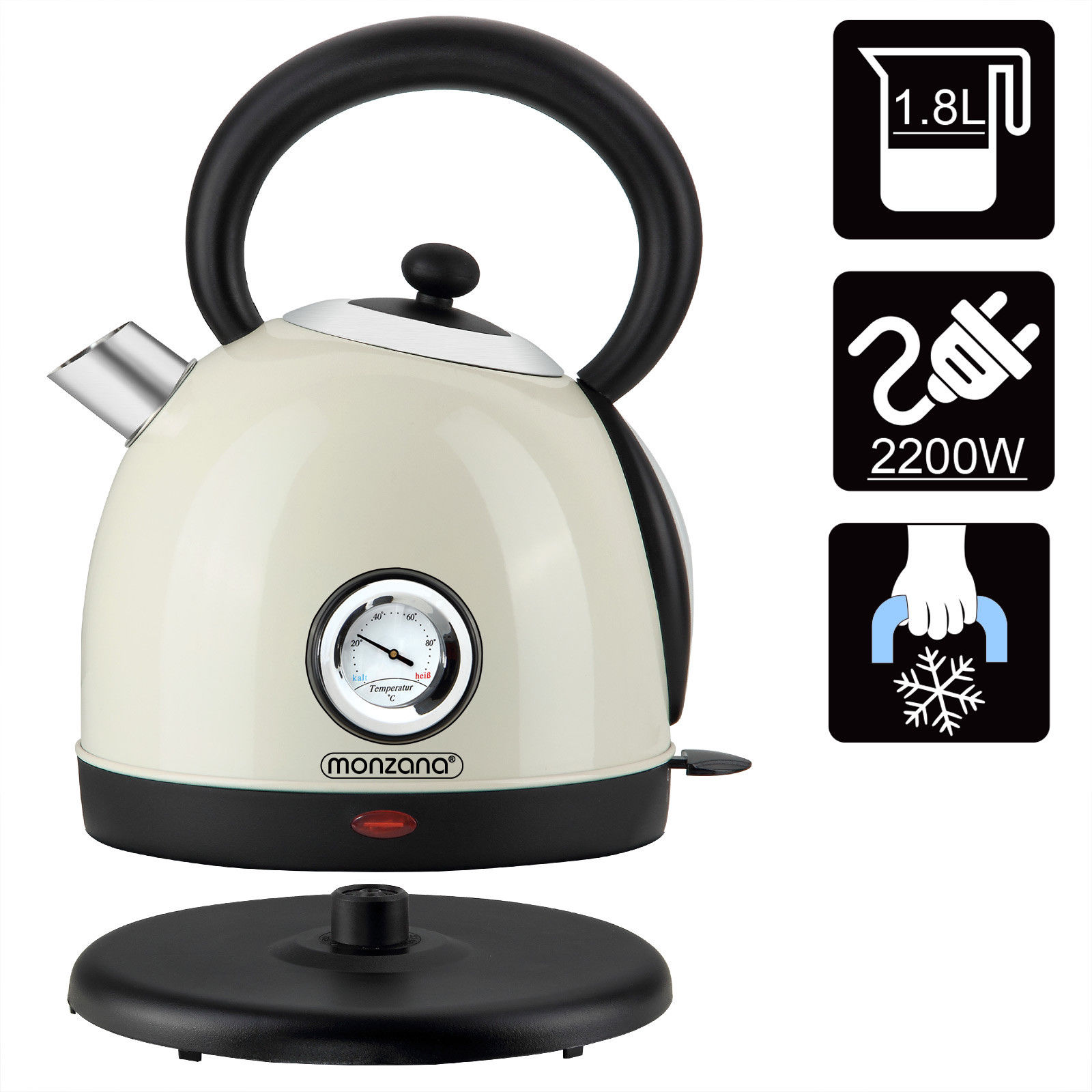 Dieser Wasserkocher aus Edelstahl im "Teekessel-Look" sorgt nicht nur für die schnelle Erhitzung des Wassers, sondern ist auch ein echter Hingucker in Ihrer Küche.