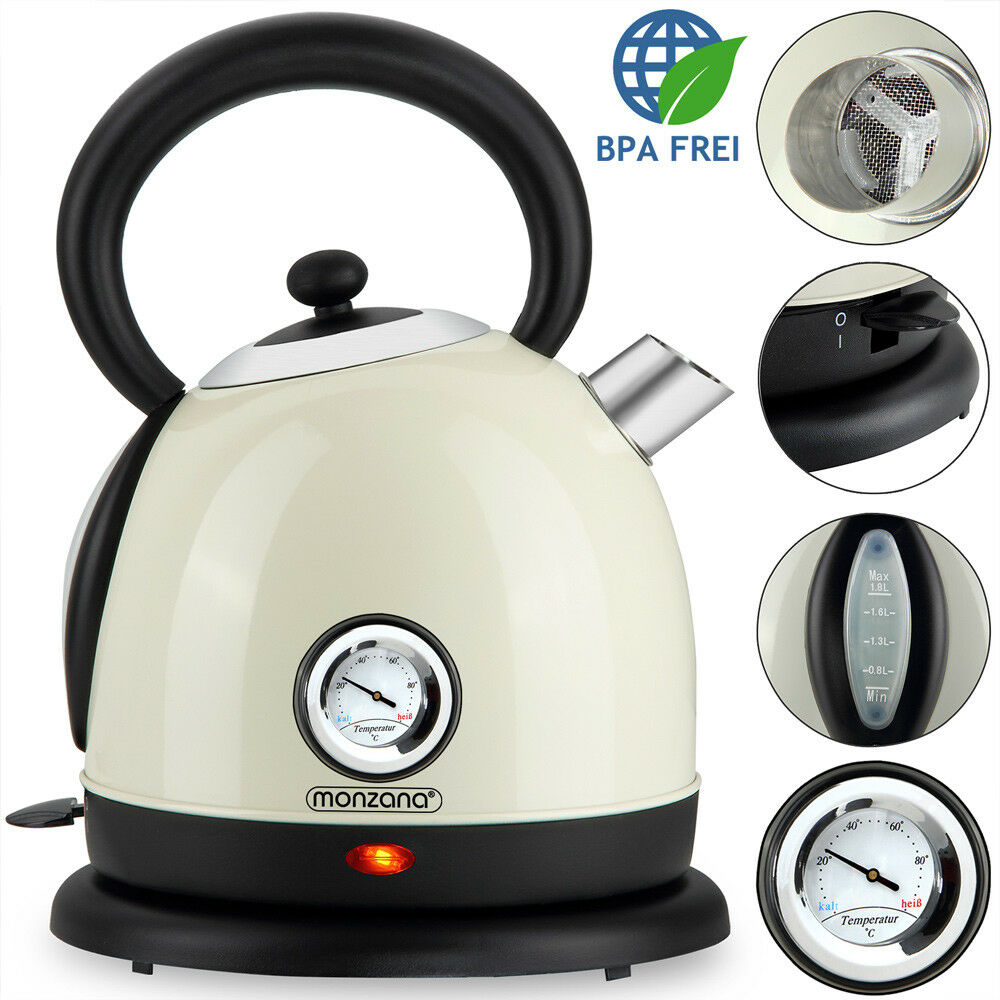 Wasserkocher aus Edelstahl im Retro Design – creme