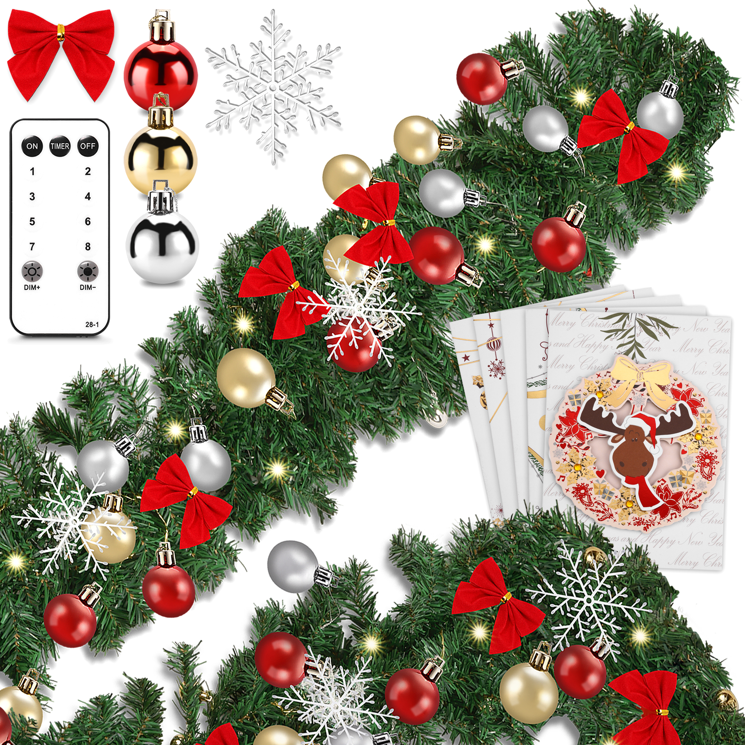 Weihnachts-Girlande 5m mit LEDs & Deko – Innen & Aussen