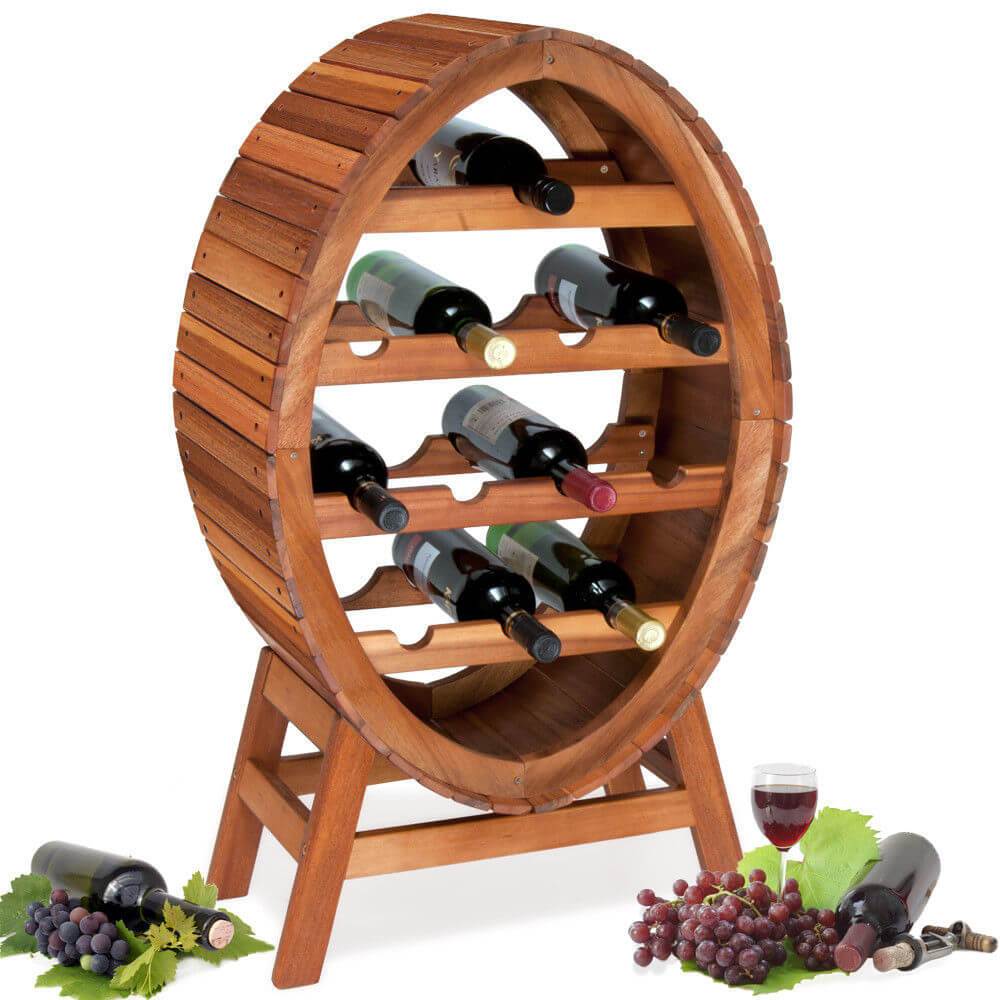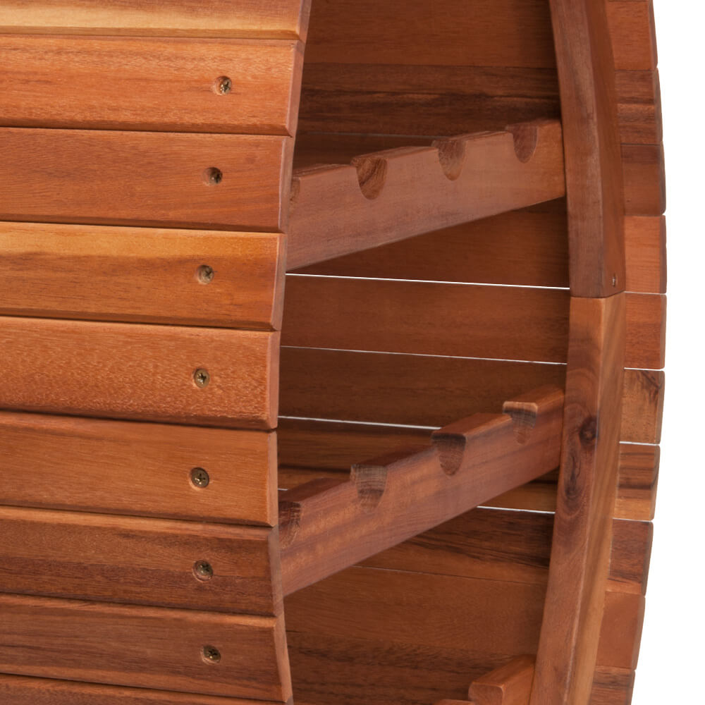 Verwandeln Sie Ihr Zuhause in einen Weinkeller der Extraklasse! Dieses Weinregal im charmanten „Weinfass-Design“ ist nicht nur ein optisches Highlight, sondern auch die stilvollste Möglichkeit, Ihren edlen Tropfen einen Ehrenplatz zu geben.