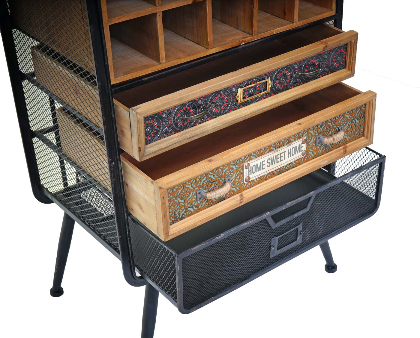 Ganz oben im Regal können Sie Ihre Weingläser einhängen, sodass sie jederzeit griffbereit sind. Auf der geräumigen Ablage darunter ist ausreichend Platz, um die Gläser zum Einschenken abzustellen oder einen passenden Snack zum Wein anzubieten. In diesem Weinregal können bis zu 10 Flaschen ihren Platz finden. Die verschiedenen Schubladen im Patchwork Design vollenden den Look. Mit unserem Weinregal haben Sie alles parat, um einen edlen Tropfen in guter Gesellschaft zu genießen.