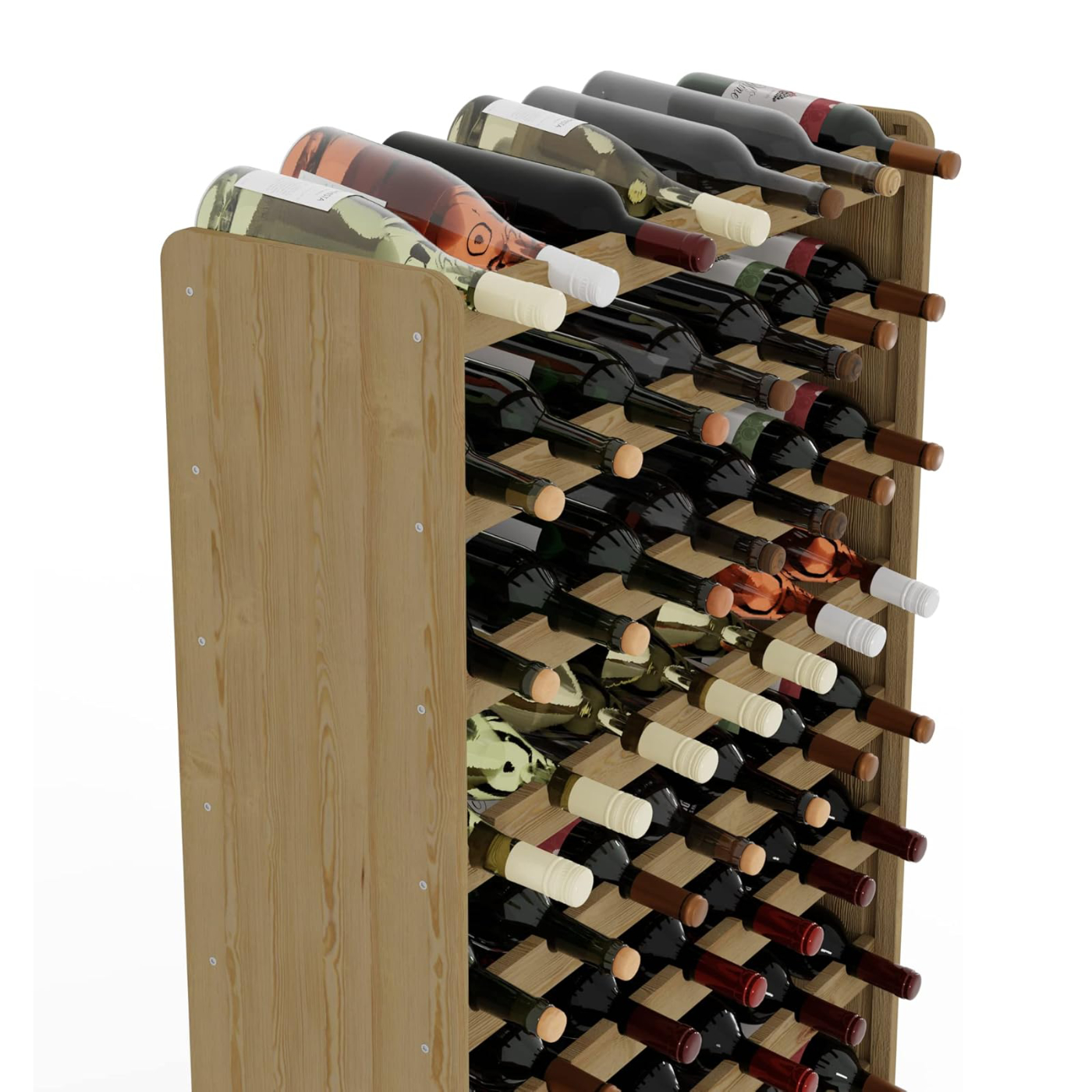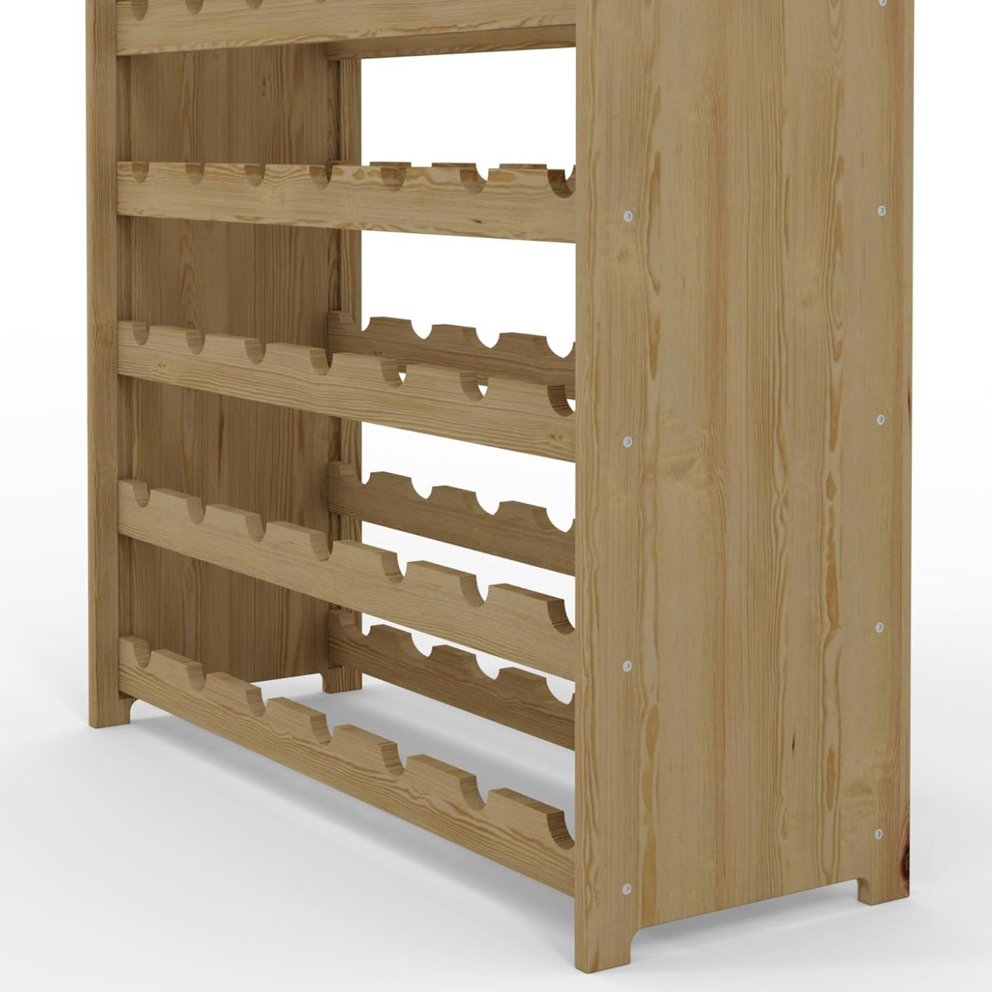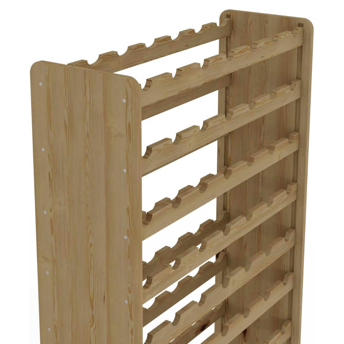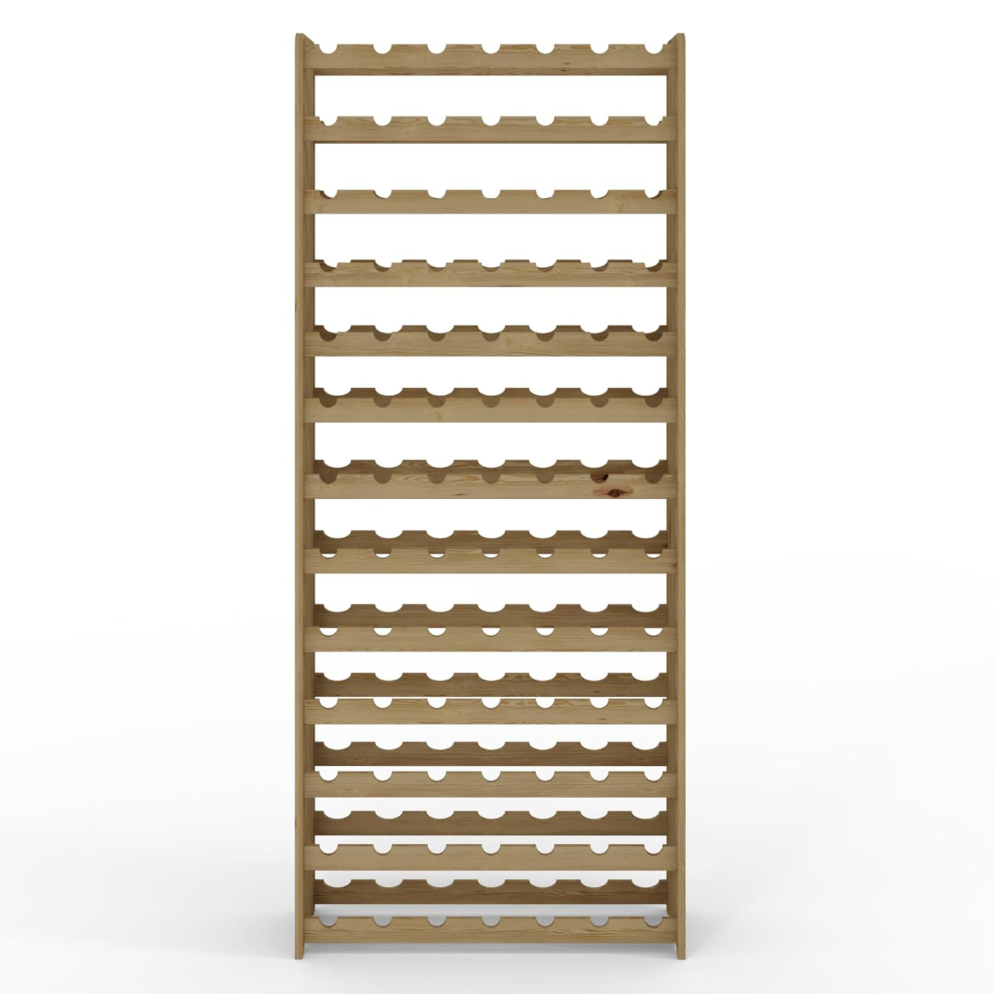 Dieses Weinregal aus massivem Kiefernholz in natürlicher Farbe ist die perfekte Lösung für Weinliebhaber mit einer großen Sammlung. Mit Platz für 91 Flaschen bietet es enorm viel Stauraum und sorgt für die optimale Lagerung Ihrer edlen Tropfen.