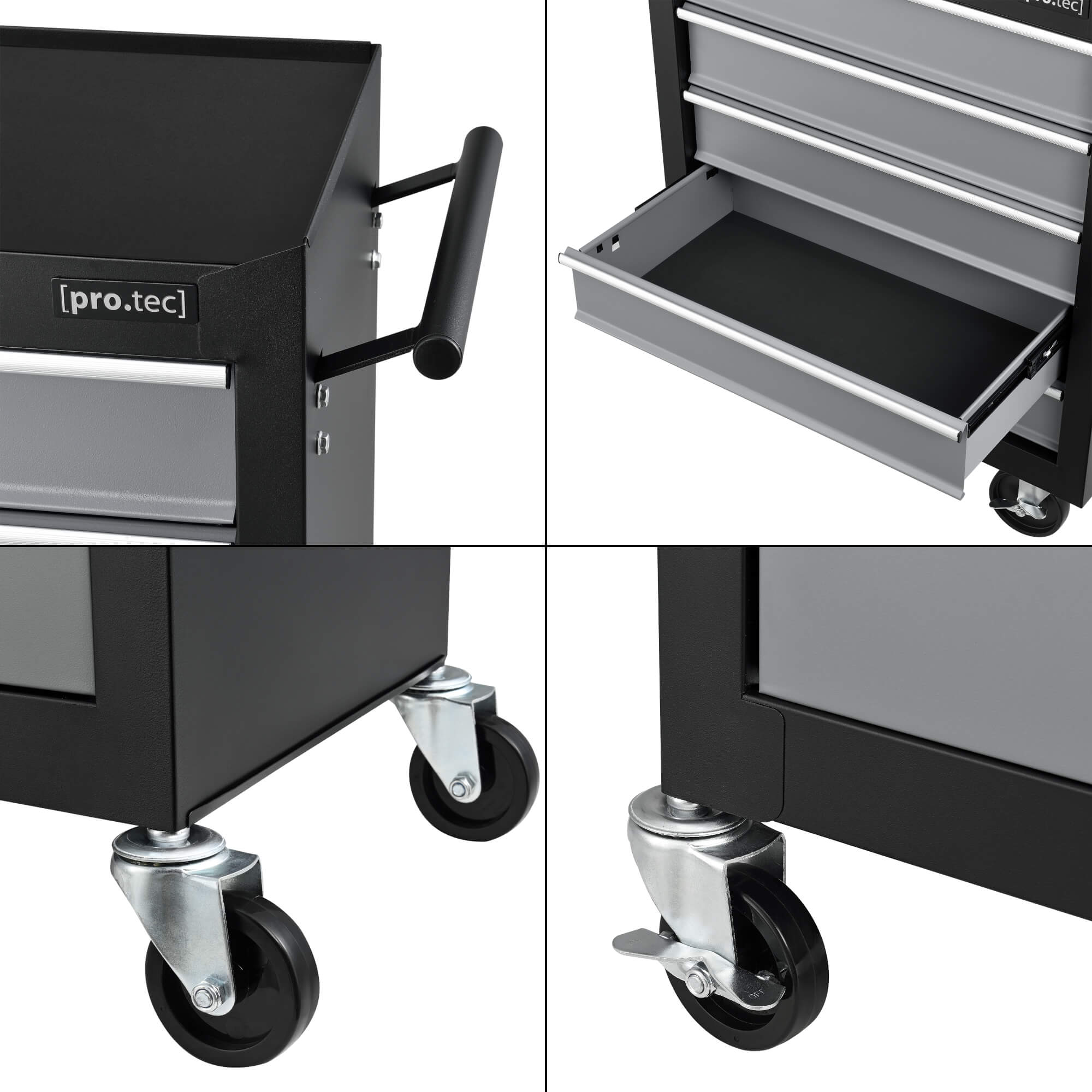 – Stabiler Werkzeugwagen mit 4 Rollen für mobilen Einsatz