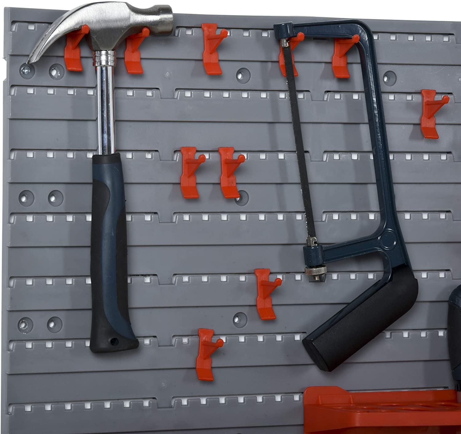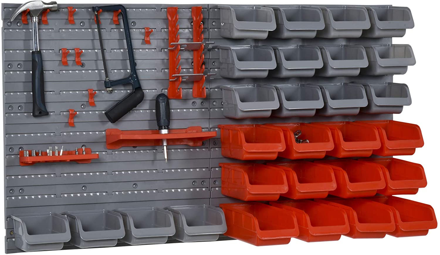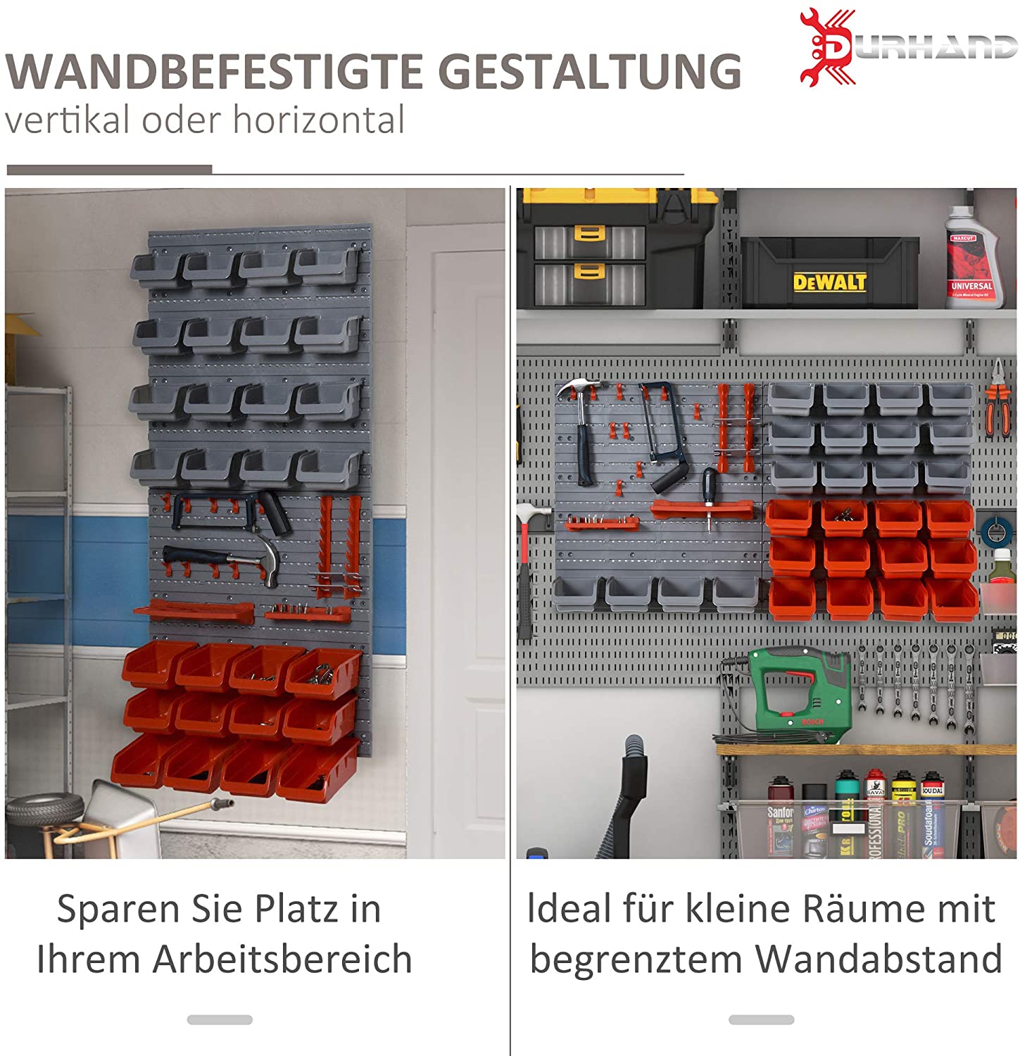 - Tool Organizer mit 2 Stecktafeln und Behältern in 3 verschiedenen Größen, ideal für Werkstätten, Garagen und Heimarbeitsplätze